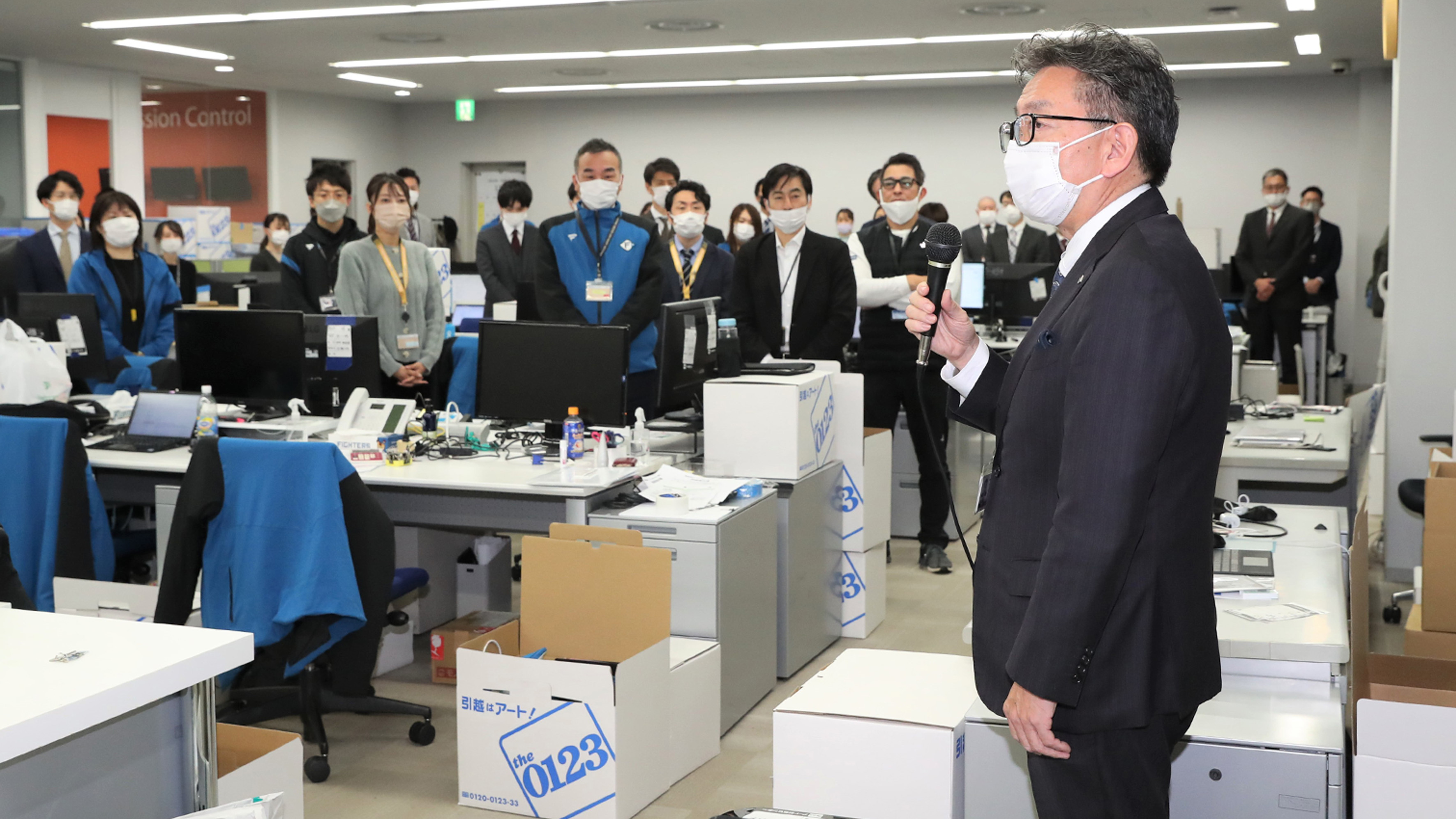 集まった職員らの前で、川村浩二代表取締役社長兼オーナー代行(61)があいさつ。リーグ最下位にとどまった今季の戦いを振り返り「成績、結果は非常に苦しいものがありましたけれども、1年間のトライアウトということで若手選手に出場機会を与え、ハツラツとしたプレーが見られたと思います。今シーズンの評価は、来年の結果で決まるんじゃないかなと考えております」と成長著しいチームに期待を寄せた。