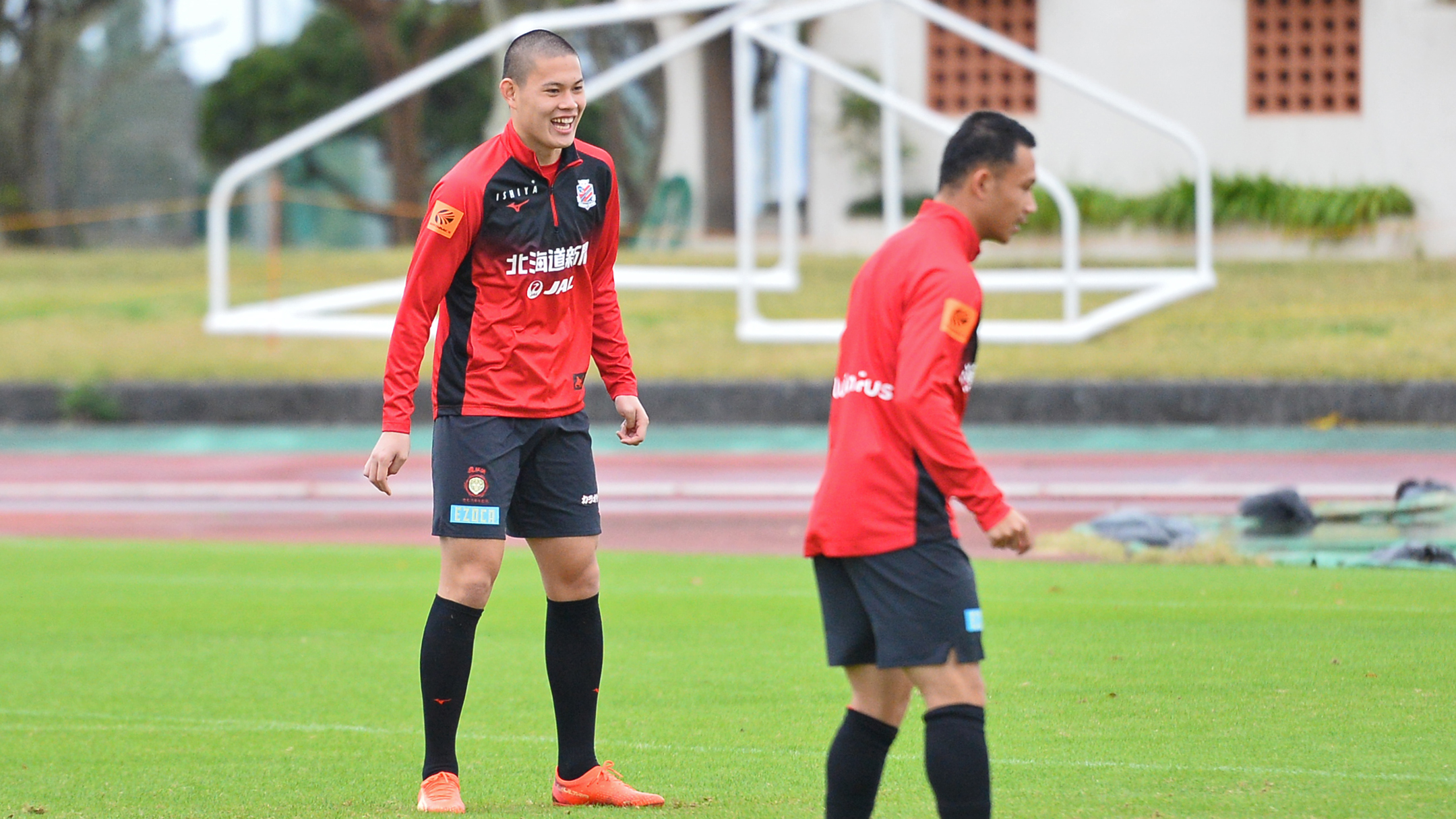 プロ入り3年目を迎えたFW中島大嘉(20)が今季を〝伝説の1年〟とするため精力的にトレーニングを行っている。全国の舞台で躍動した後輩たちから受けた刺激を糧に、開幕スタメンの座をつかみ取る。好天に恵まれることが多かった先週とはうって変わって、肌寒さを感じるほどの曇天の中で行われた休養日明けの練習。そんな中でも中島はいつもどおりの明るい笑顔を見せていた。この日の11対11では1トップやシャドーの位置でプレー。ディフェンスライン裏への抜け出しを意識した動きを何度も見せてゴールに迫った。