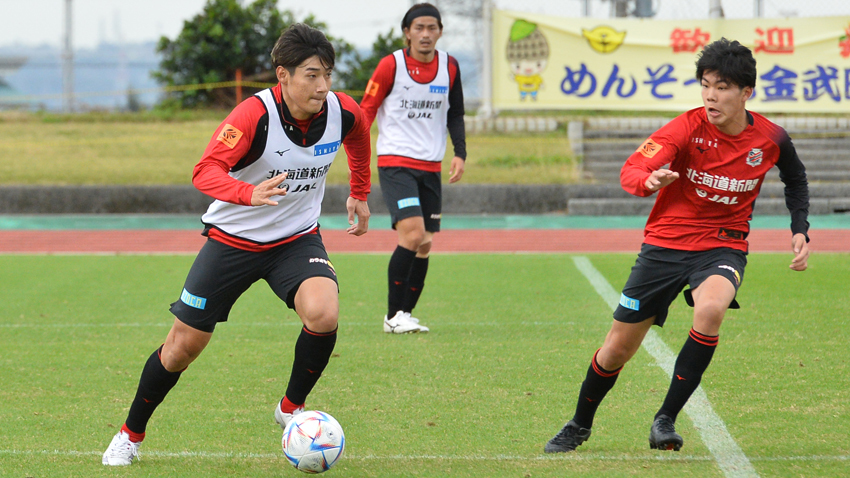 この日行われた11対11では主力組の3バック中央でプレー。安定したプレーのほか、周囲の選手に対して積極的にコーチングを行う姿がよく見られ、守備陣を統率していた。「もう若手と言われる年ではなく、札幌でも3年目なので、チームを引っ張っていかなければいけない存在。ほかの選手にも強く要求したいし、言うところは言っていきたい」と自覚を持って練習に臨んでいる。