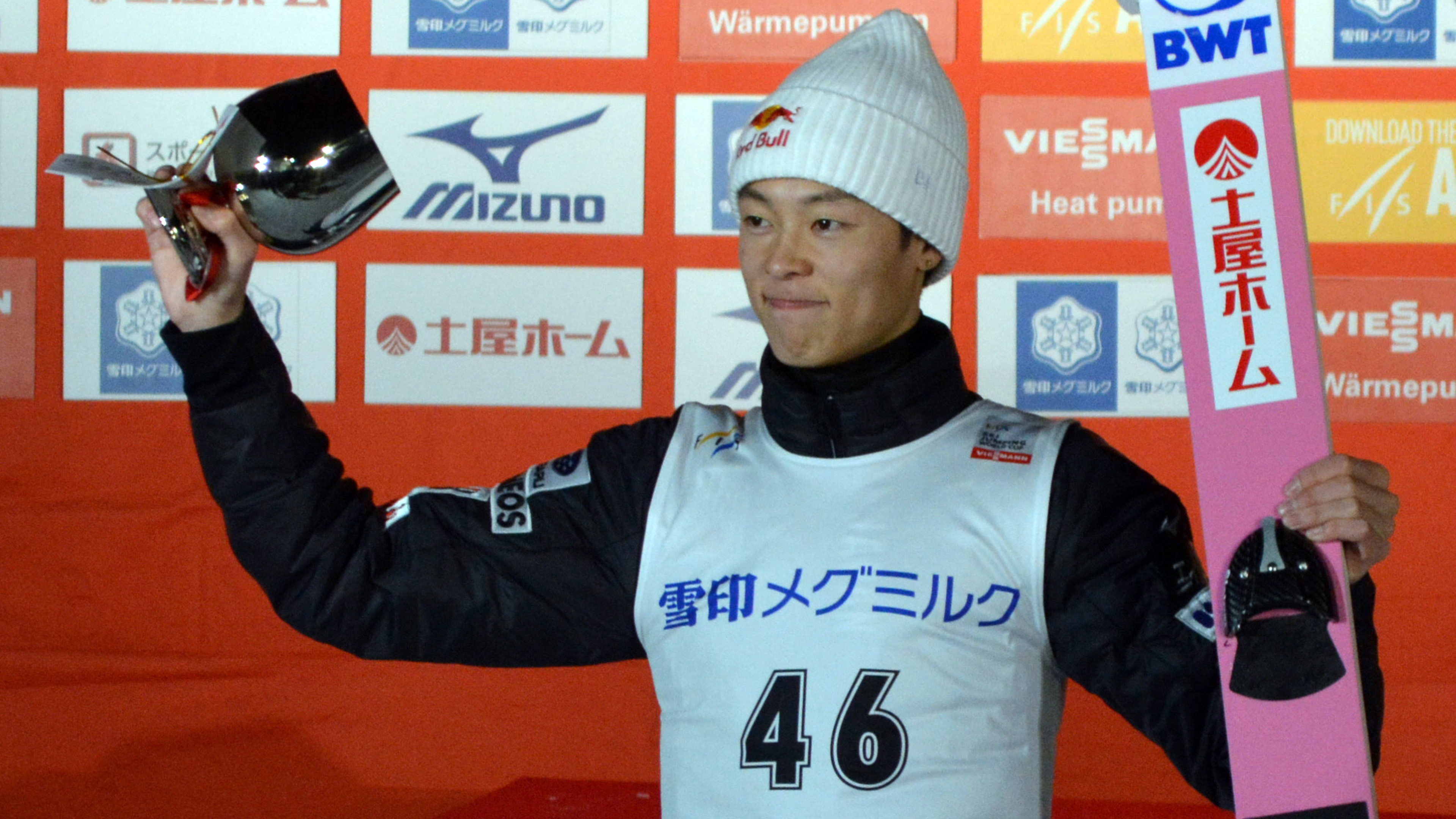 1回目135.5メートルで2位に付け、迎えた2回目。不利な追い風の条件でも130メートルを記録し、渾身のガッツポーズを見せた。その後に飛んだ1回目首位のダビド・クバツキは125.5メートル。7.2ポイント差を付けての逆転優勝となった。札幌の地で刻んだW杯通算28勝目を「(国内のW杯で)いきなり優勝っていう形で表彰台に登れてすごくうれしい」と喜んだ。