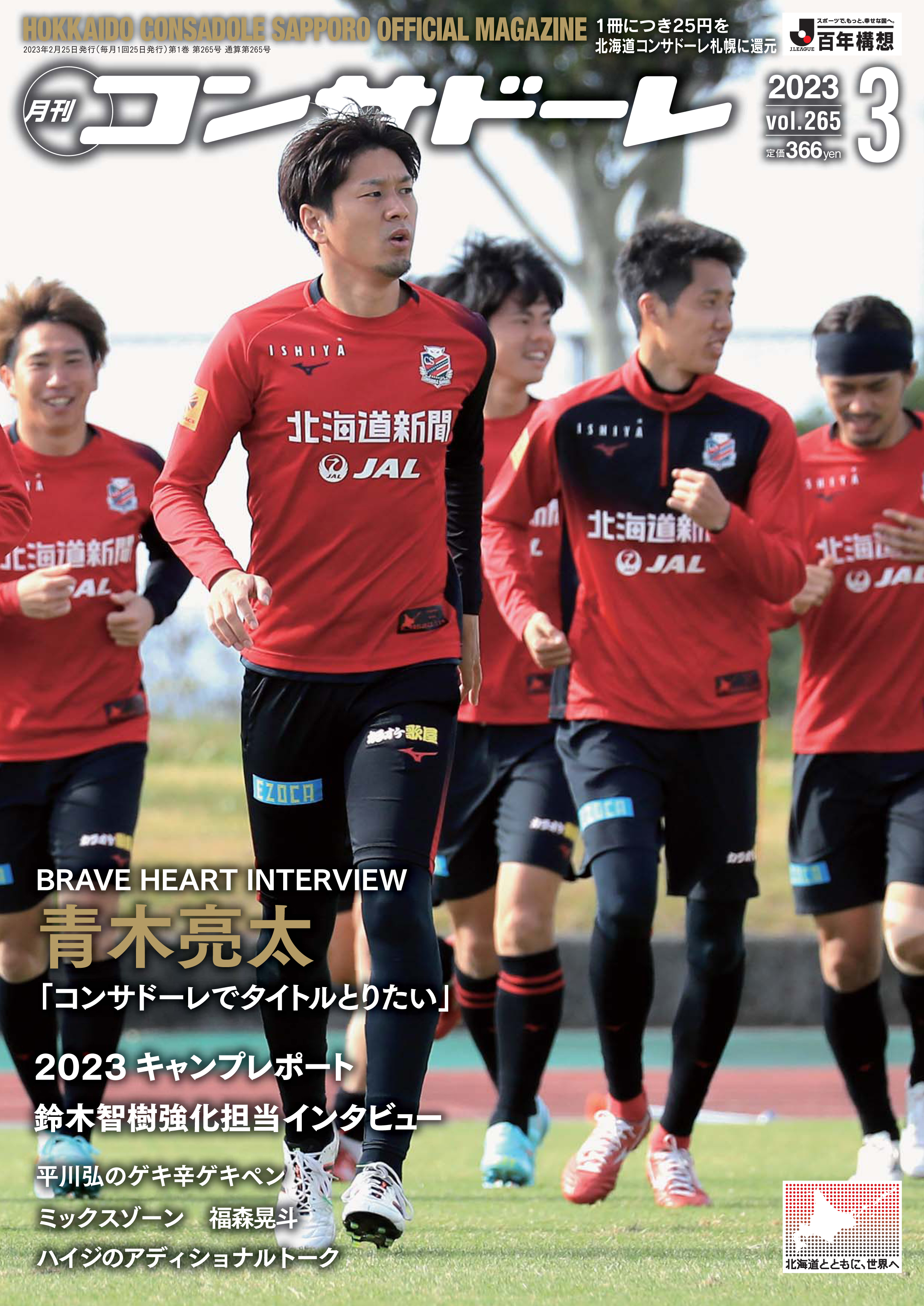 「ブレーブ ハート インタビュー」はMF青木亮太(26)。昨季はチーム最多得点を挙げるなどブレークを果たした背番号「11」が、悲願のチーム初タイトルへ向けて熱い思いを語った。沖縄、熊本で行われたキャンプのレポートや写真もたっぷり掲載。また、クラブの強化担当スカウトで選手時代から札幌一筋の〝生え抜き〟鈴木智樹氏(37)にインタビュー。現在の心境を語ってもらった。「ミックスゾーン」はDF福森晃斗(30)が登場。「平川弘のゲキ辛ゲキペン」「ハイジのアディショナルトーク」など、人気連載も見逃せない。