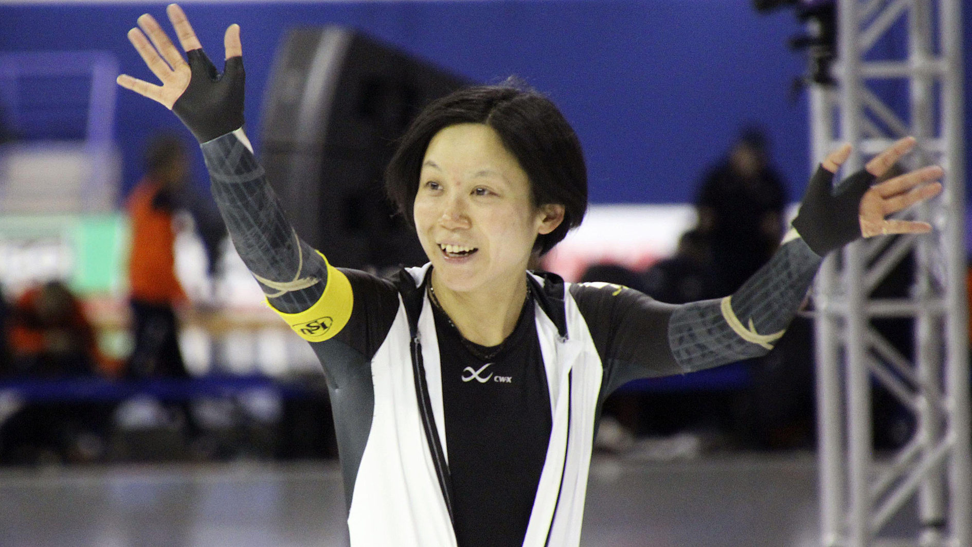 腰高で3位だった第5戦の反省を生かし、「低く滑ることだけを意識しながらやった」。躍動感あふれる滑りで、最初の100メートルは全体1位の9秒45で森重に0秒28の差をつけた。バックストレートでもぴったりと相手の後ろにつき、前に出た最後の直線も粘った。