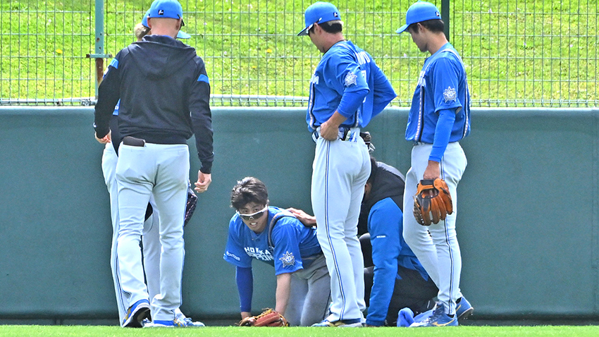 新庄監督は試合後、「(負傷箇所は)右膝。フェンス前でジャンプをして、捕ったら受け身に変えるテクニックを、コーチがこうなる前に伝えておかないといけない。こっちの反省点はあります。あれも結果の1つ。打つのも、ファインプレーも、ケガをしないのも結果。起こったことは仕方ない」と話した。