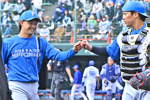アンダースローに挑戦してから丸一年。マウンド上での冷静な振る舞いが成長を物語る。二回には連打で無死一、二塁とされたが、後続を空振り三振と一ゴロ併殺に仕留めピンチを切り抜けた。「思い描いた感じで投げられた。昨年のフェニックス・リーグからゴロを打たせる練習をしてきた。意図的に打たせて取ることができている」と、投球内容に手応えを得ている。