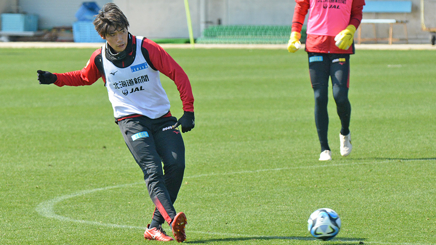 攻守一体を表現する―。ホーム開幕の25日神戸戦(札幌ドーム)を控える札幌は、ゲーム形式の練習などで調整した。18日の広島戦(エディオンスタジアム広島)で無得点に終わった攻撃の改善には、後方からのパス供給が鍵を握る。DF岡村大八(26)も「ビルドアップでの技術が必要になる」と気合を入れた。