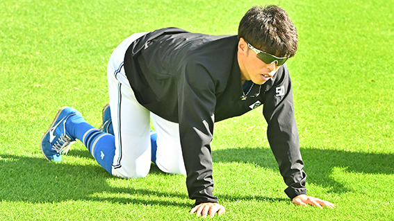 三回に飛球を捕った後、外野フェンスに激突し、倒れ込んだ。担架でベンチ裏へ運ばれ、容体が不安視されていたが、長期離脱の危機は避けられたもようだ。この日はトレーナーの指示を受け、体幹トレーニング、ジョギング、キャッチボール、軽めのティー打撃を行った。
