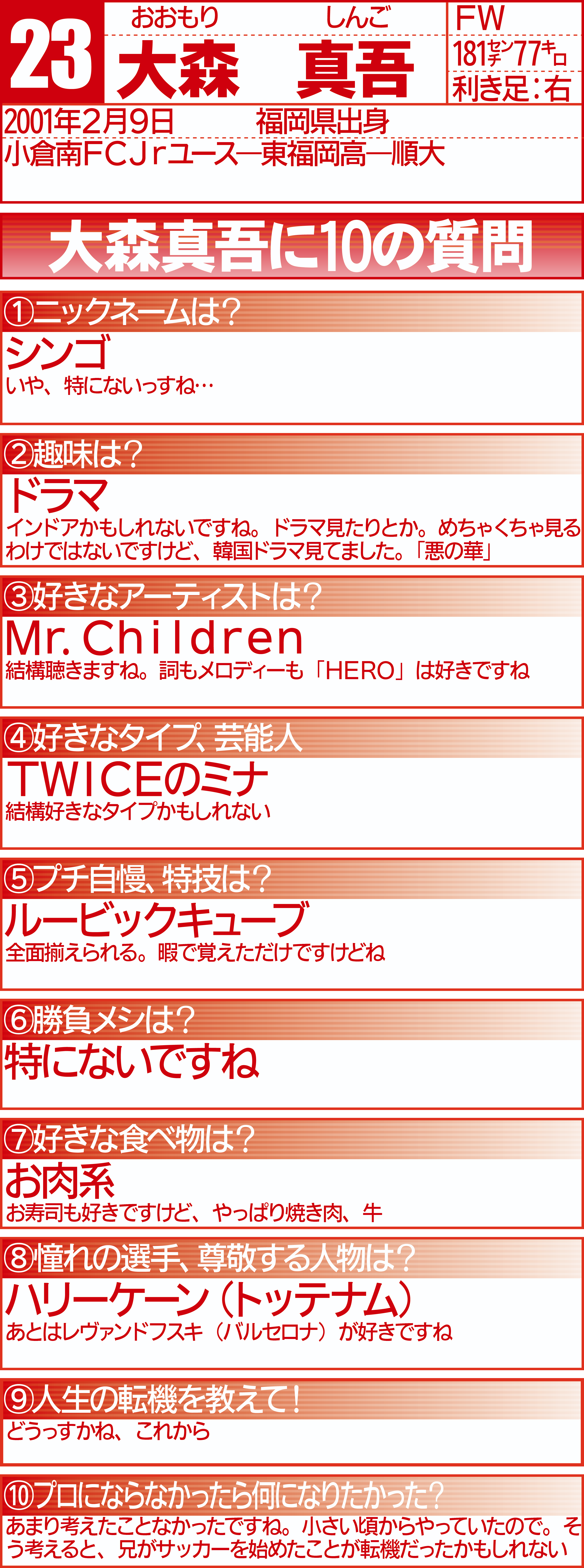 2023年シーズンは北海道コンサドーレ札幌に5選手が新加入。元日本代表やパリ五輪世代など即戦力が揃った。道新スポーツWEBでは、基本情報にプラスして新加入選手の素顔が垣間見えるオリジナルの新人名鑑を作成。それぞれ「10の質問」に答えてもらった。