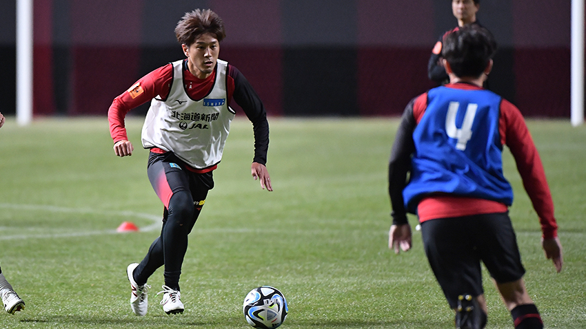 1月8日に行われたキックオフイベントからおよそ1カ月半。赤黒の勇者たちがついに札幌の地へ帰ってきた。「いい環境で、芝の状況も良さそうですし、この雰囲気でサッカーをやれる喜びを感じています」と、慣れ親しんだ札幌ドームのピッチでの約1時間の練習を振り返った。