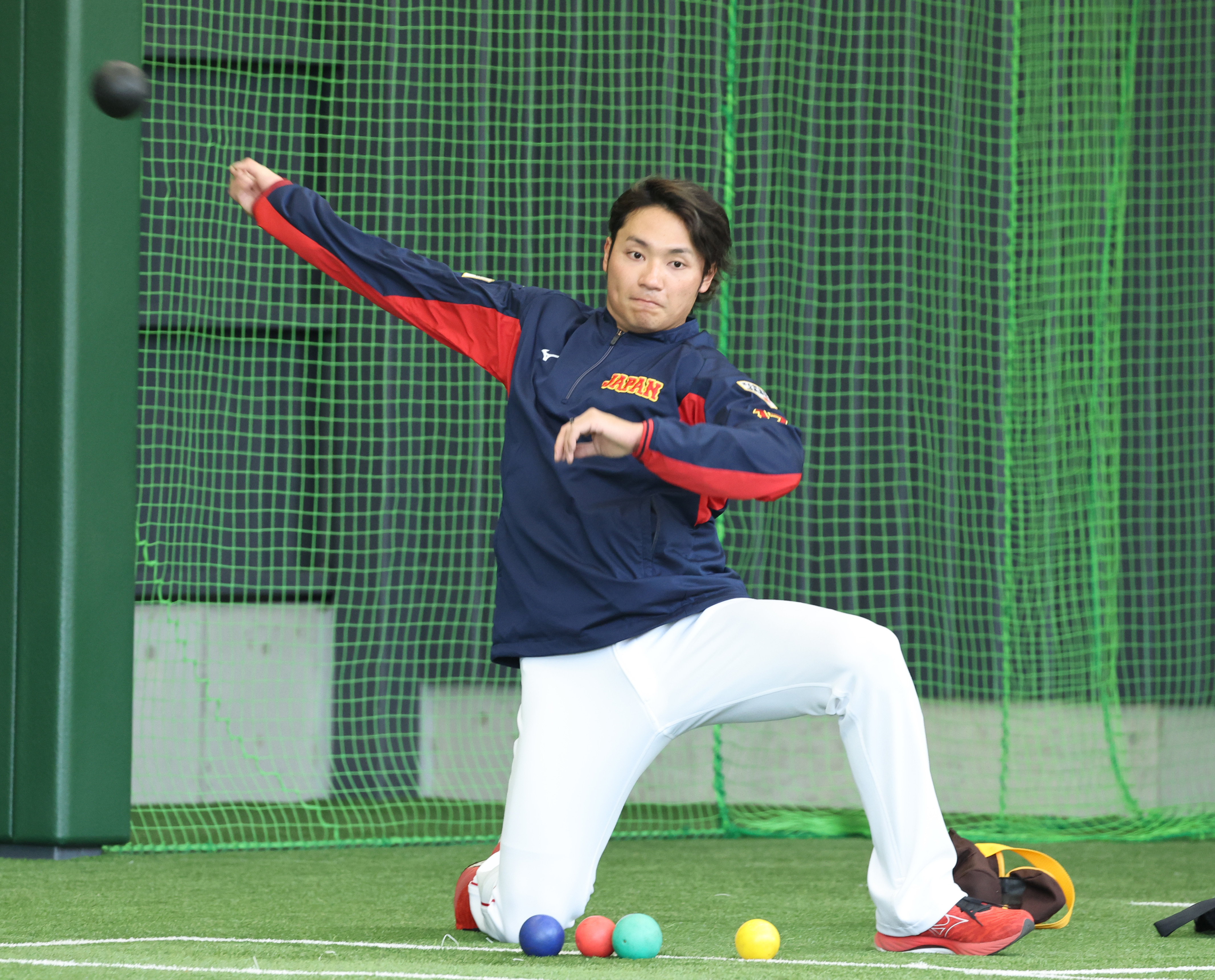 前日25日の壮行試合・ソフトバンク戦(宮崎)では1回2奪三振無失点と好投し「コントロールできているのと、『横から見ていたら、スピード以上にボールが強く感じた』と言ってもらえた」。登板後にロッカールームで声をかけられ、「うれしいっすね。ニヤニヤしちゃいました」と、はにかんだ。