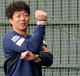 合宿初日はダルビッシュ投手とキャッチボールをしました。ボールを受けるのは2011年以来です。きれいでスムーズな体重移動やバッターに向かうような威圧感のある投球フォームを見て『こんな感じだったなぁ』と懐かしさを覚えました。