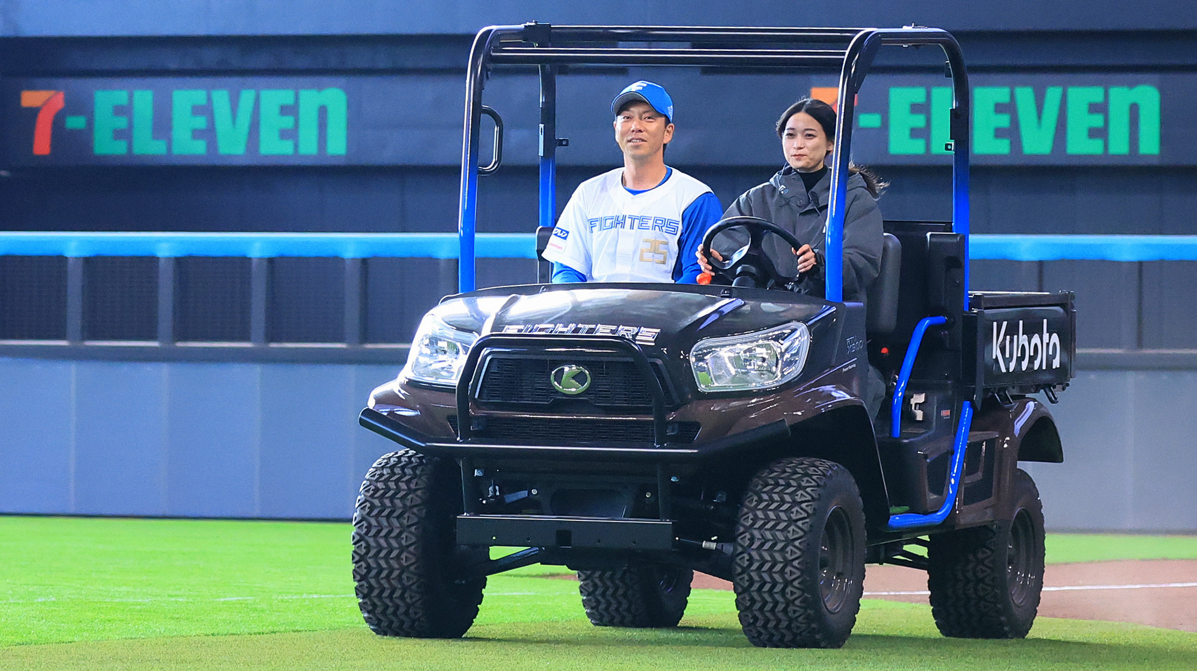場内に投手交代のアナウンスと登場曲が流れると、宮西を乗せたリリーフカーがゆっくりと内野に近づいてきた。主に農場での移動や資材運搬に使われている米国製の車両で、価格は約252万円。農業が盛んな北海道を応援する目的もあり、今回はクボタから2台、贈呈された。