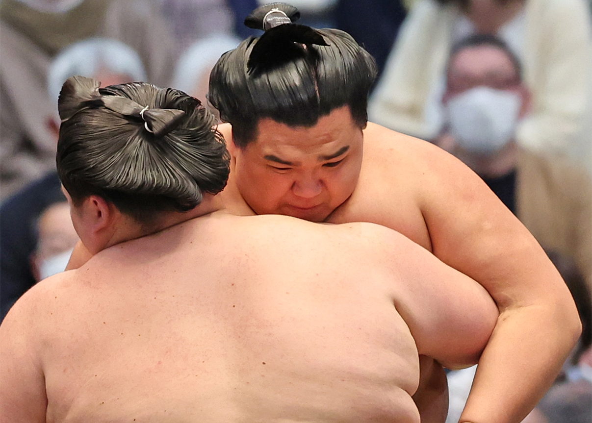 身長204センチは、1953年秋場所以降の新入幕では元横綱曙、元大関琴欧洲と並ぶ高身長。その体を生かしたスケールの大きい四つ相撲を武器にたどりついた幕内だが、「まだあんまり実感はしていない」という。3年前の春場所で前相撲を取った21歳。同じ大阪で、さらに駆け上がる予感を漂わせた。