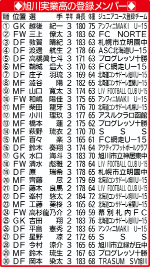 リーグ戦は12月までの長丁場だ。プリンスL北海道は出場8チーム2回戦総当たりの14試合だったが、プレミアLは12チーム2回戦総当たりの22試合。昨季のイーストを制した川崎フロンターレU18や、青森山田高など、毎週が全国大会の顔ぶれだ。自動降格は下位2チーム。旭川実業高は、残留ラインを「勝ち点24」、7勝3分を最低目標に設定した。庄子主将は「(去年の)3年生がプレミアに上げてくれた。経験だけにするのは良くない。やるからには勝つことを目指す。毎試合、毎試合成長して繋げていく」。高校世代最高峰の舞台で堂々と存在感を示す。