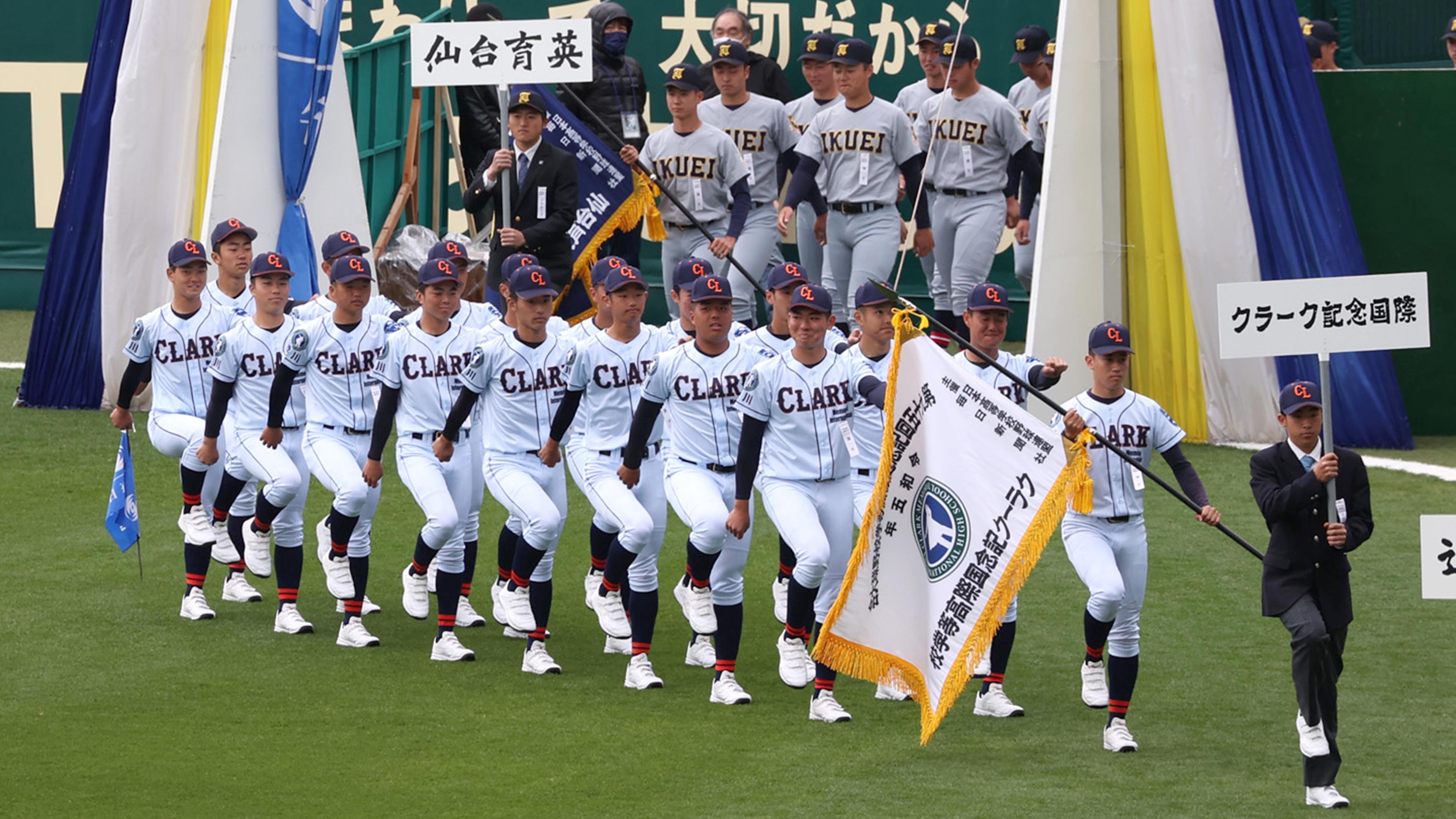 昨年の開会式はコロナ禍で大会初日の3試合に出場する6校のみで行われ、その中でクラークが唯一の2年連続の入場行進となった。昨年は遊撃手で出場した新岡主将は「昨年は初めてで、もう何もかも緊張っていうのはあったんですけど、今年は全然そういう緊張はなく、堂々と行進できた」と胸を張った。