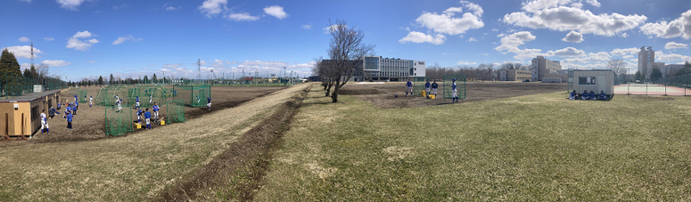 グラウンド問題も解消に向かっている。右翼後方には人工芝サッカー場、左翼後方には交通量が多い国道36号が位置する。両翼ともすでに防球フェンスが設置されているが、ホームベースの位置を三塁側へ動かして右翼フェンスとの距離を増やし、さらに国道側、三塁側にも防球フェンスを増築。本塁付近には天井ネットを設置し、打球が敷地外へ飛び出さない工夫を尽くす。