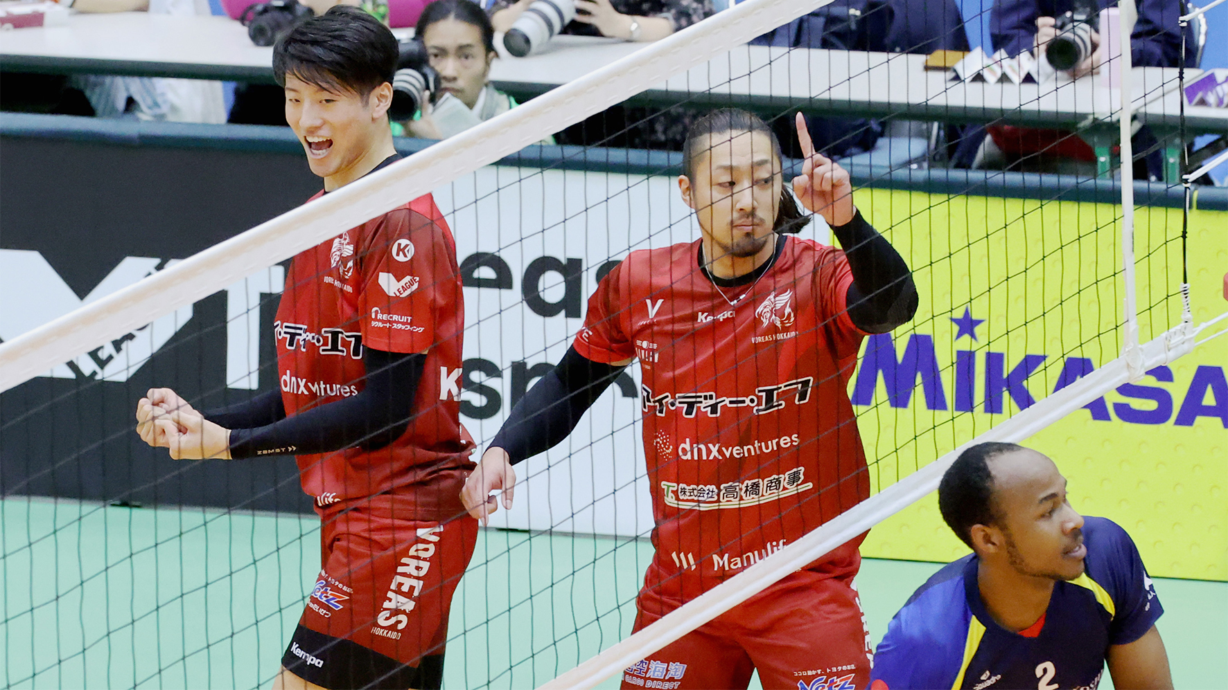 激闘を制し、V1昇格に一歩近づいた。V2連覇を果たしたヴォレアス北海道が、V1最下位の大分三好にフルセットの末、競り勝った。ブロックポイントは相手の10本を上回る13本を決めるなど、エド・クライン監督(41)の戦術が的中。昨年の入れ替え戦は初戦に先勝したが、翌日は敗戦を喫し、得点率の差で昇格を逃した。今度は2連勝を果たし、文句なしで悲願を成就させる。