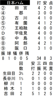 吉田がラスト2イニングで5失点 打線は有薗の2点打で先制