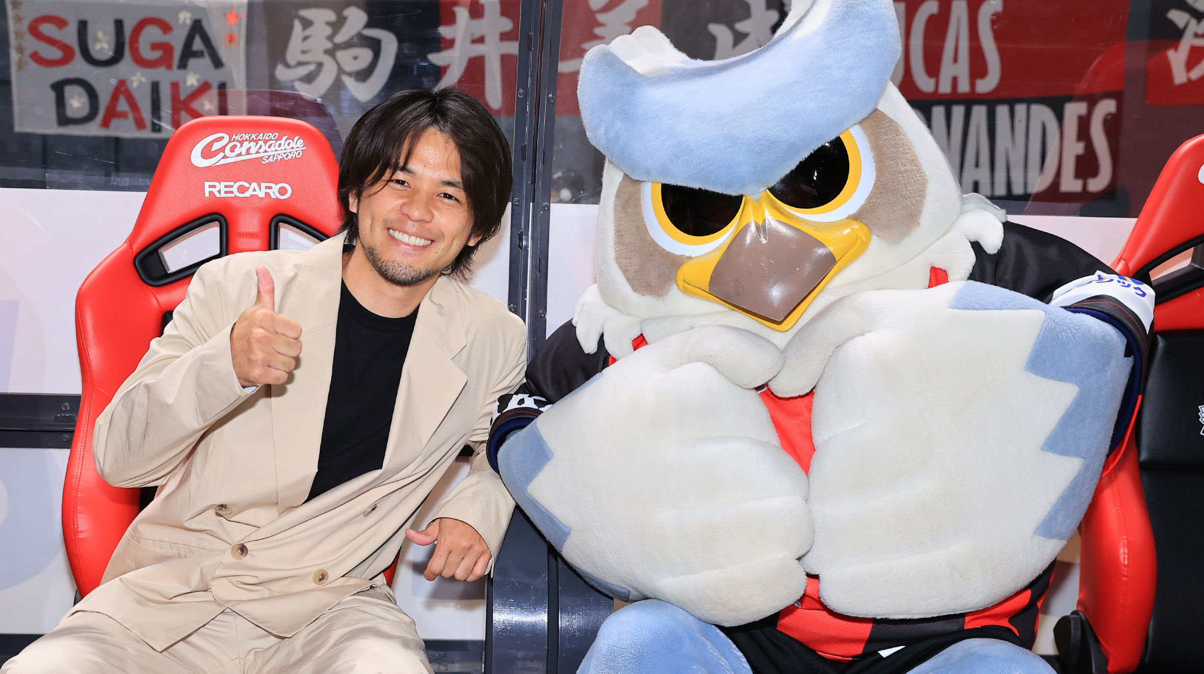 久しぶりの札幌ドームでサポーターに向けて「ただいま」とあいさつ。思い出を尋ねられると、MCを務めた河合竜二CRC(44)と試合中にプレーのことでケンカし、会場のビジョンに映し出されたエピソードを披露。その日は眠れずMF小野伸二(43)に相談し、翌日河合と和解したそう。