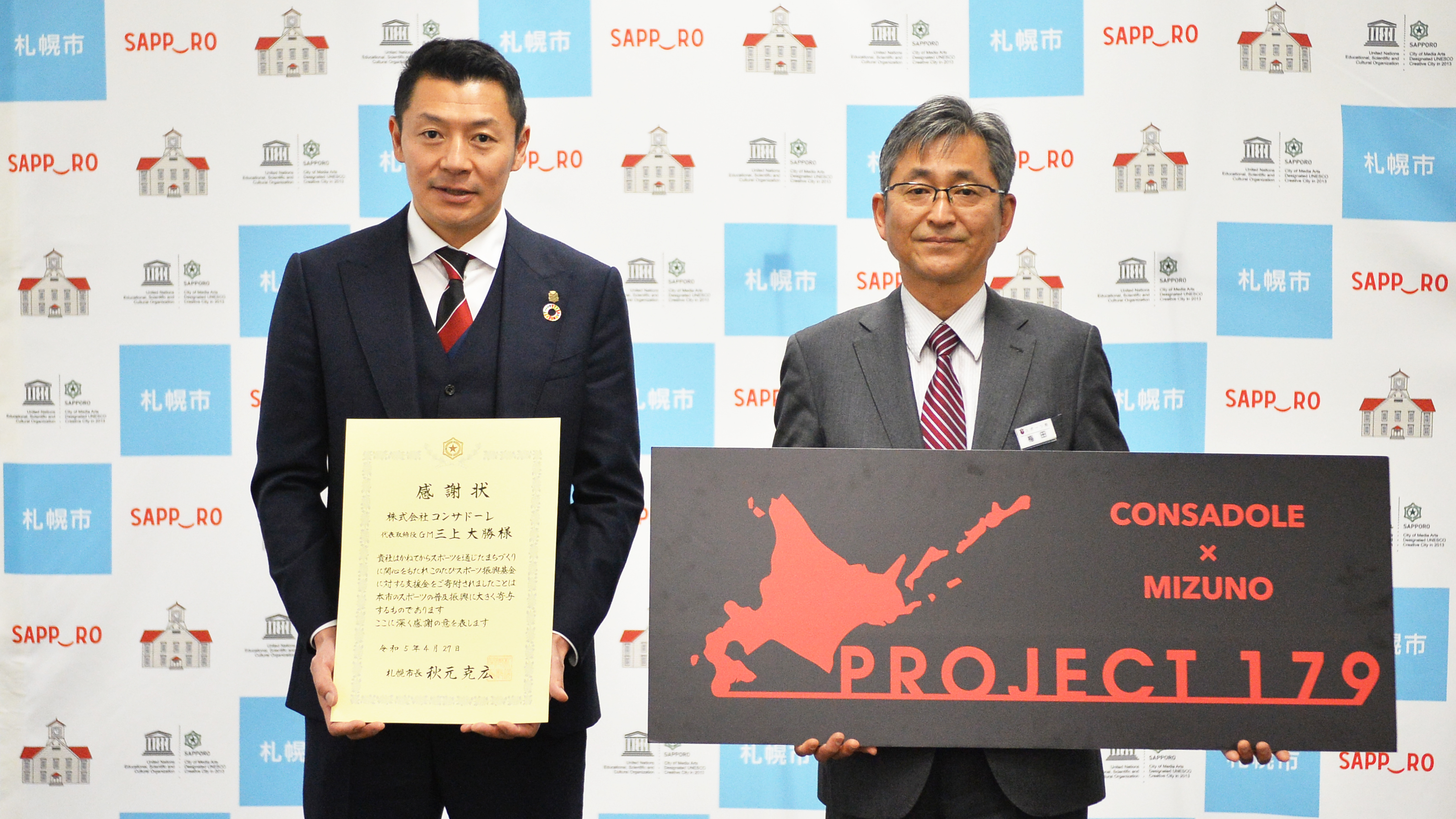 札幌市がコンサドーレに感謝状 ミズノと展開の『PROJECT179』で収益の一部を北海道地域に還元