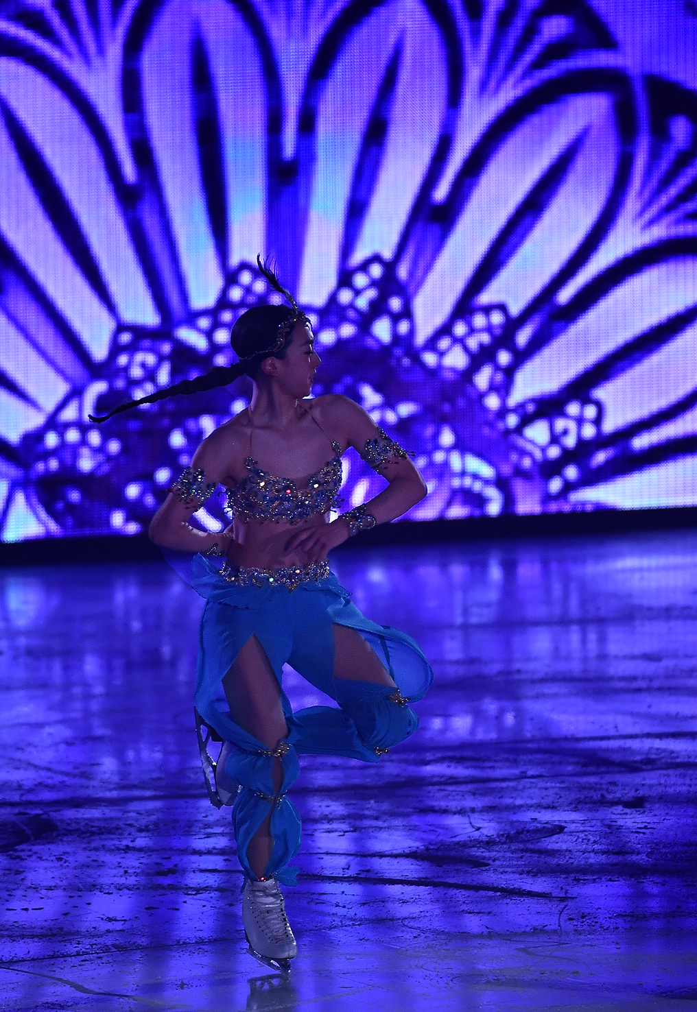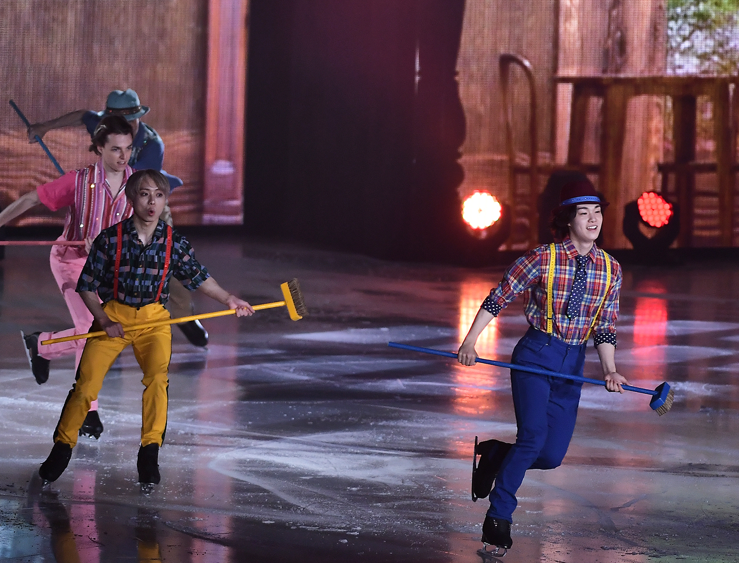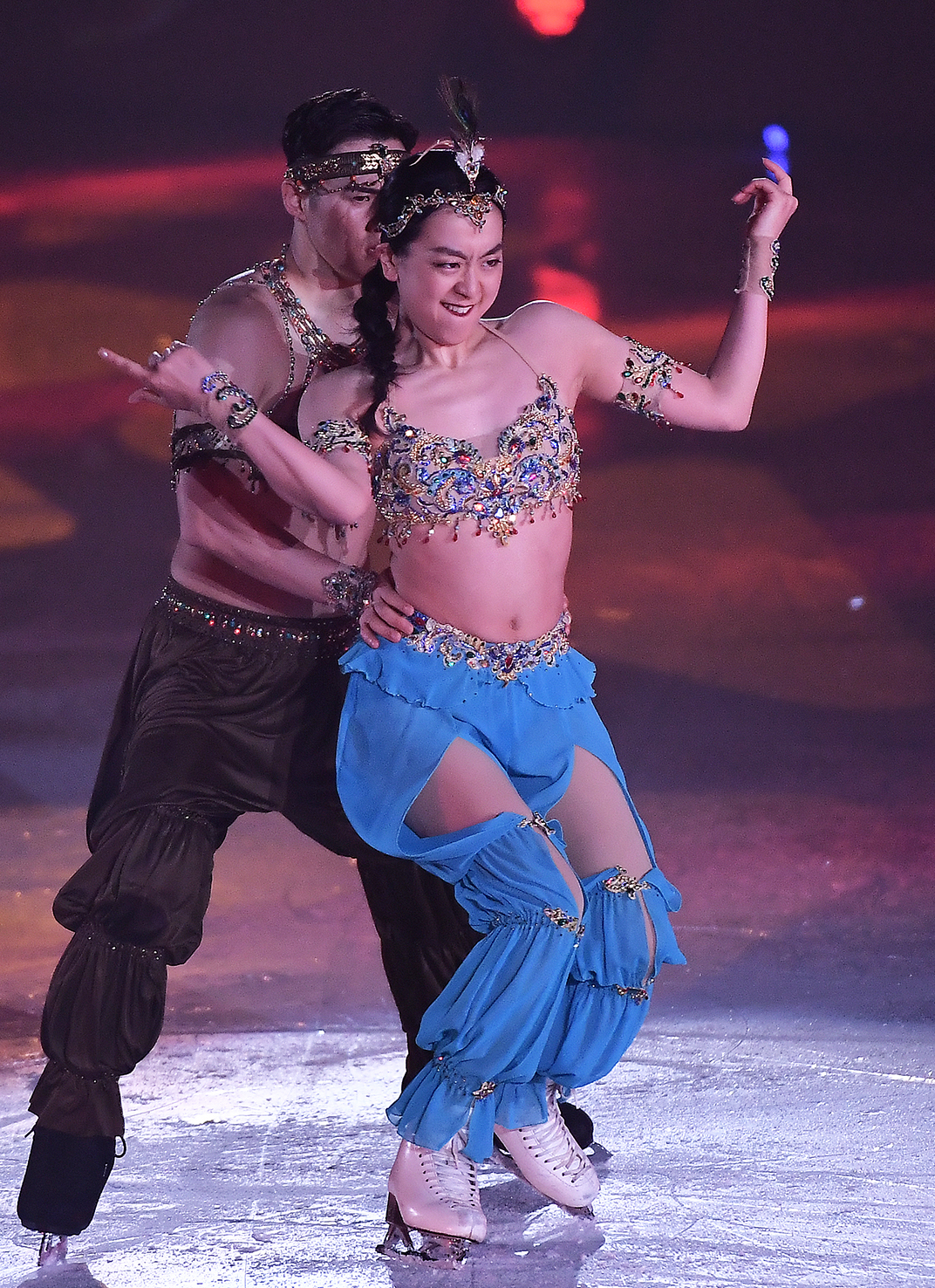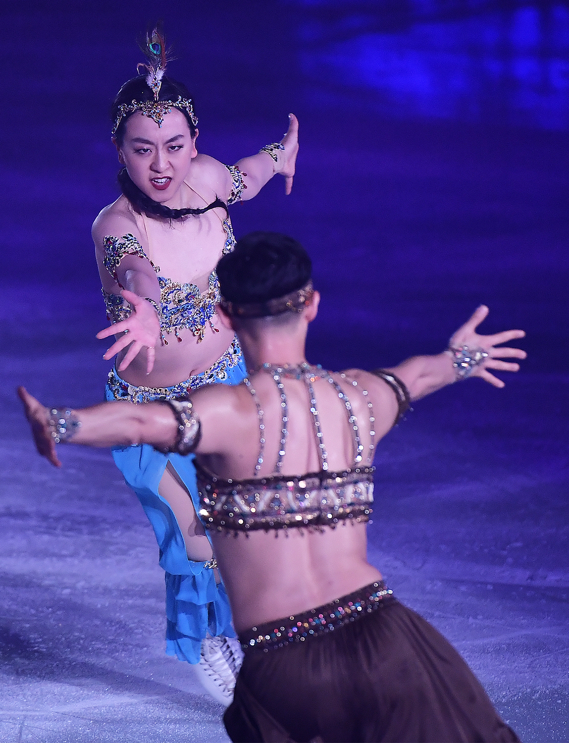 大型ビジョンの映像と多彩なライティングで氷上を演出。大音量の音楽が流れてキャスト総勢11人が登場すると、会場は大きな拍手で包まれた。プログラムは全15種あり、それぞれストーリー仕立で進行しており、異国情緒漂う衣装、会場を包み込む音響、あでやかかつ迫力のある振り付けが相まって、客席は常に興奮冷めやまず、熱気であふれていた。肌寒い会場では上着を一枚脱いでいる人も少なくなかった。