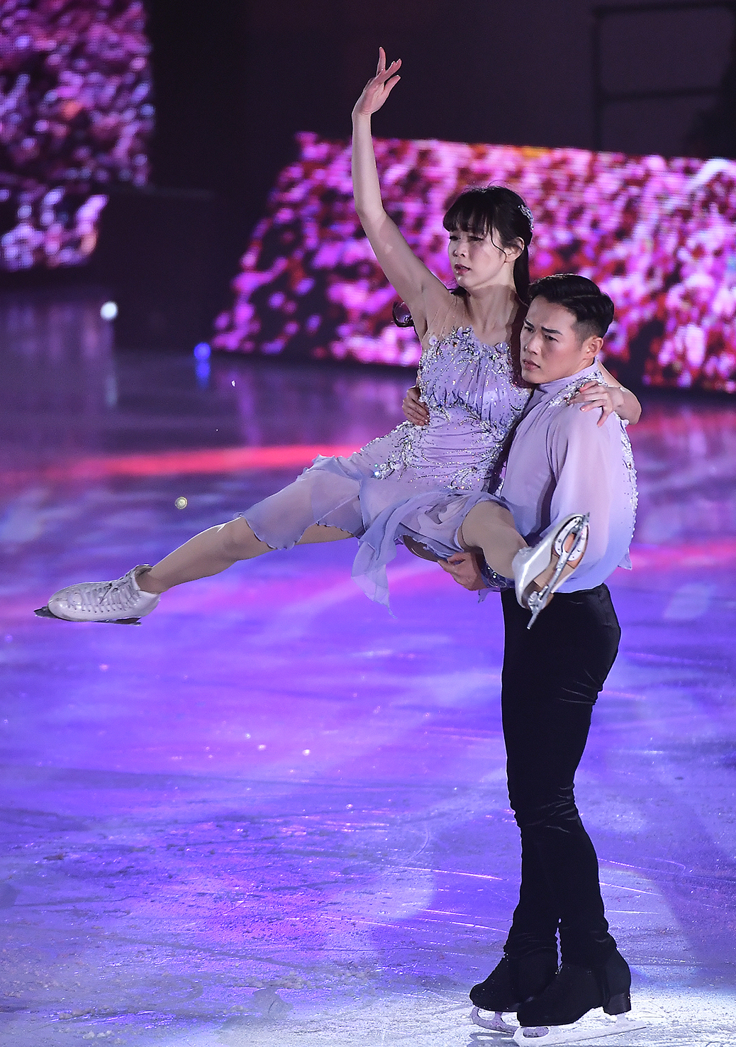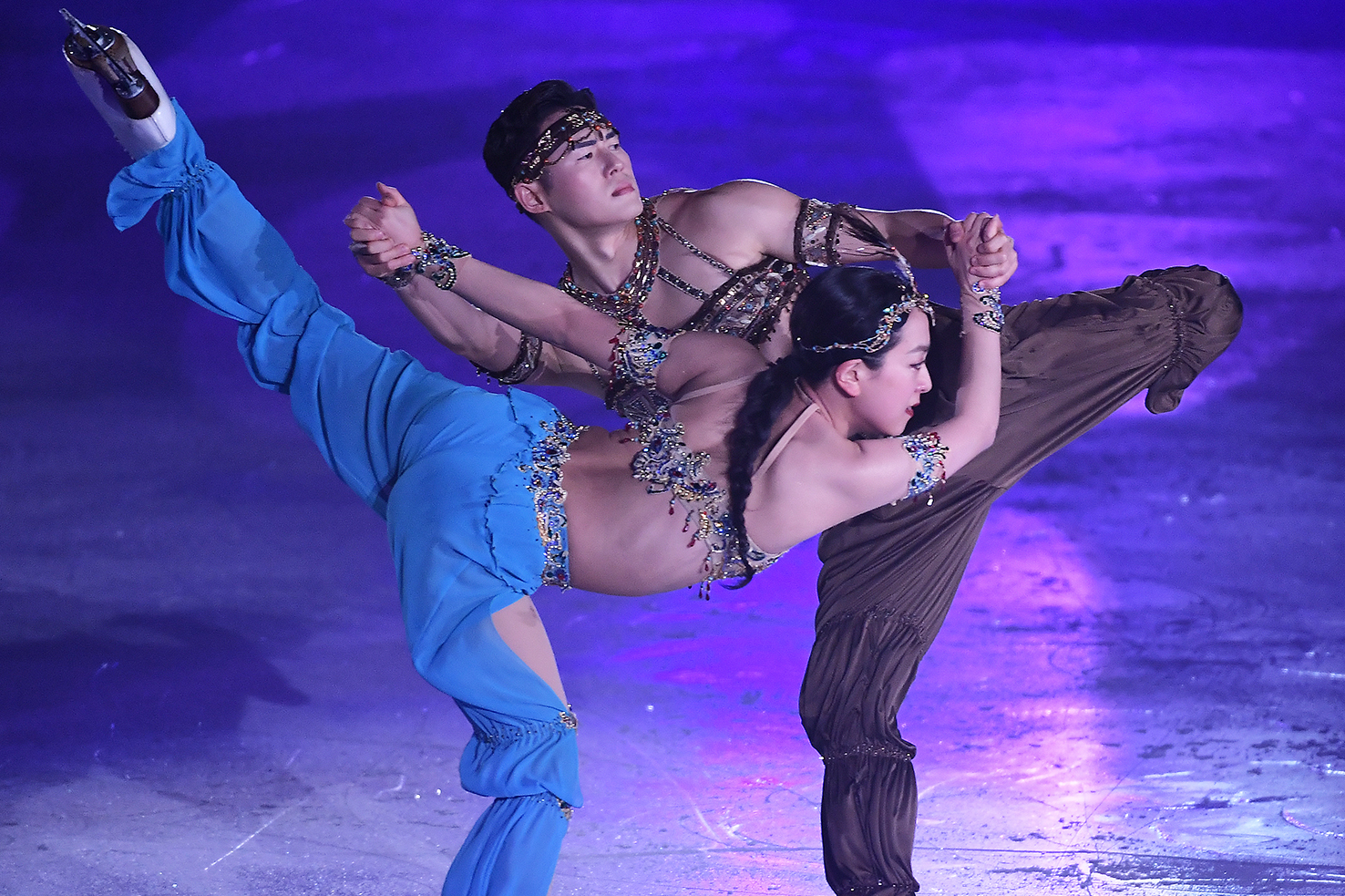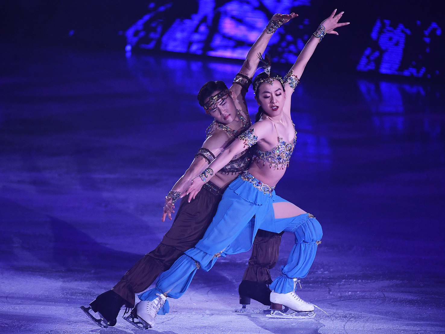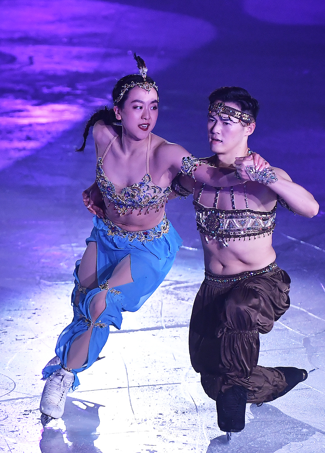 大型ビジョンの映像と多彩なライティングで氷上を演出。大音量の音楽が流れてキャスト総勢11人が登場すると、会場は大きな拍手で包まれた。プログラムは全15種あり、それぞれストーリー仕立で進行しており、異国情緒漂う衣装、会場を包み込む音響、あでやかかつ迫力のある振り付けが相まって、客席は常に興奮冷めやまず、熱気であふれていた。肌寒い会場では上着を一枚脱いでいる人も少なくなかった。
