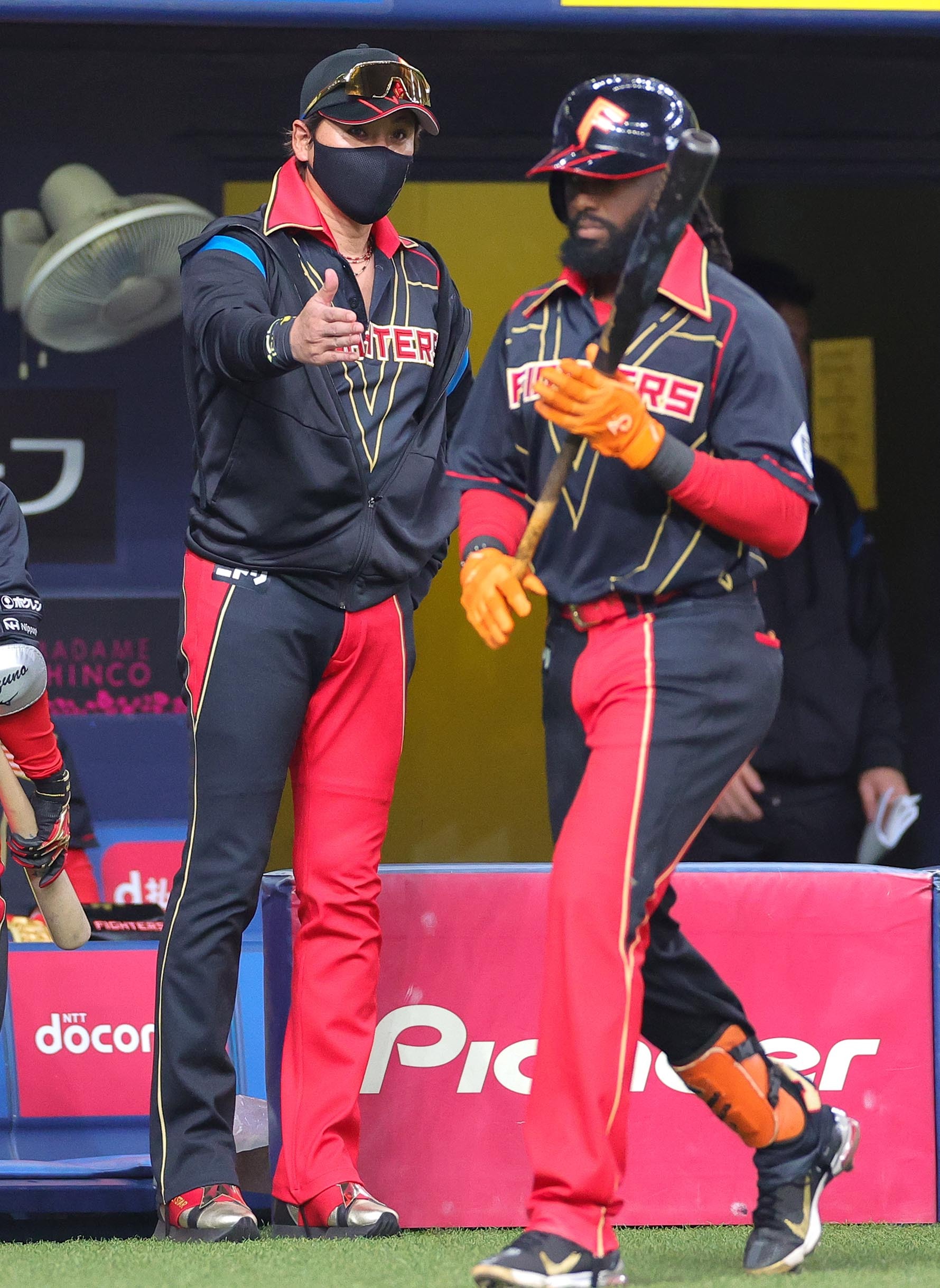 八回1死二、三塁、ハンソン(右)を代打で送り出す新庄監督