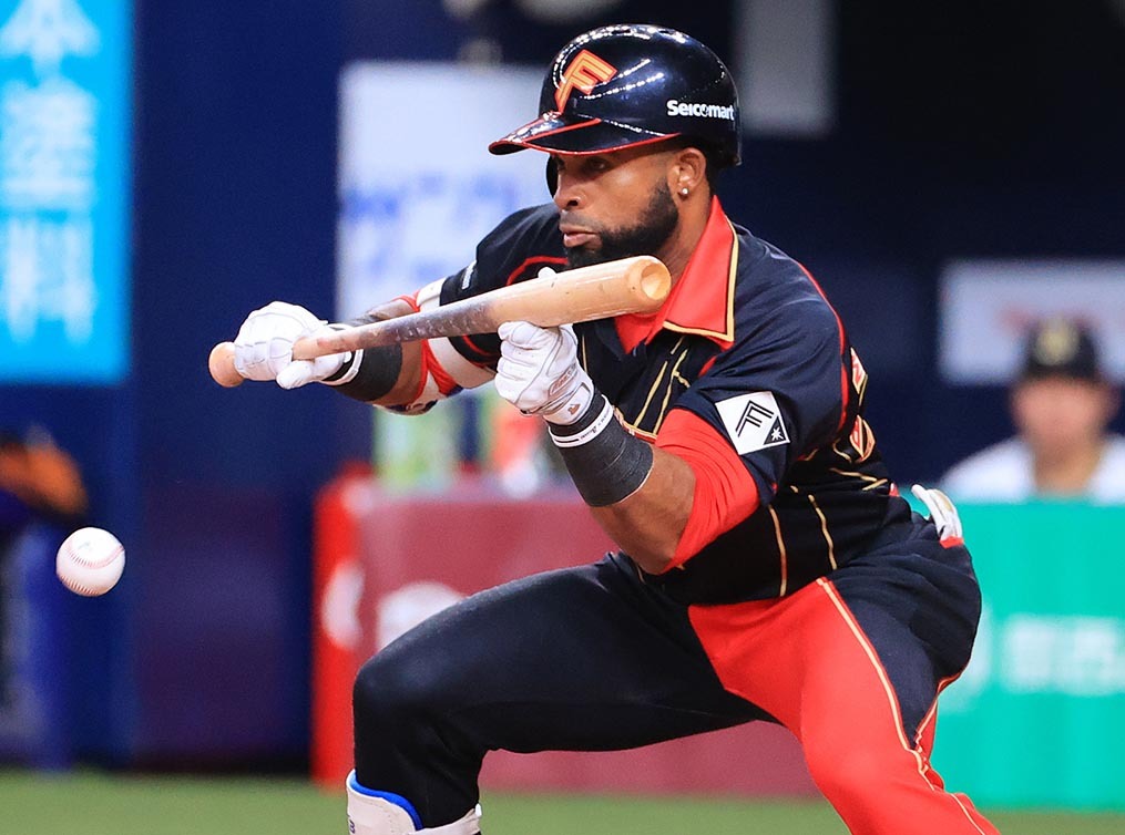 八回無死一塁、セーフティーバントを決めるアルカンタラ