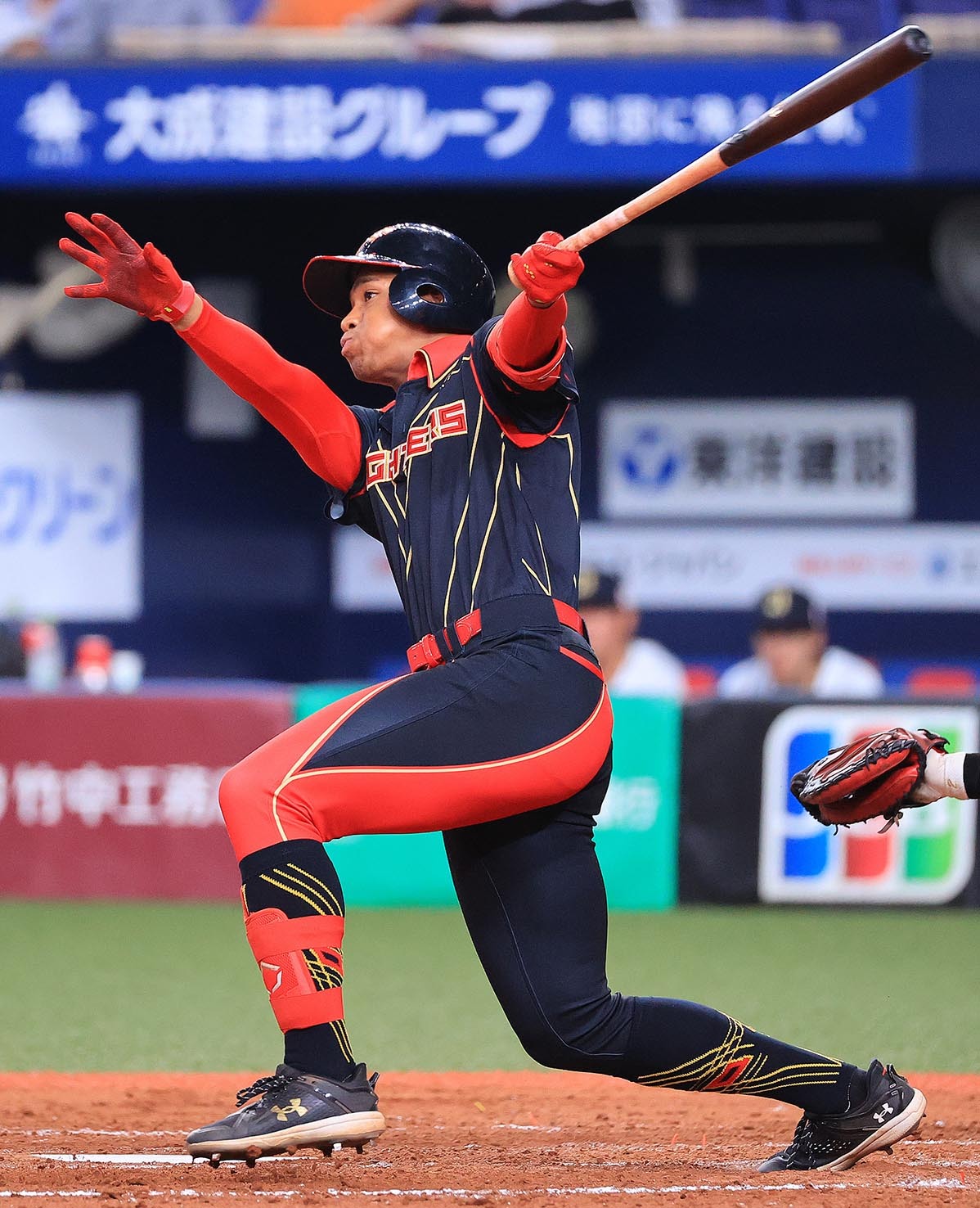 ■4ー1の六回2死三塁で右前にタイムリーを放った中島