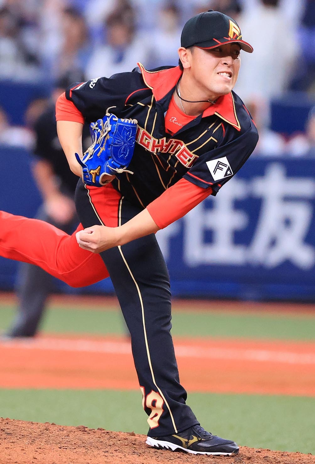 5―1の八回に4番手で登板した宮内春輝投手(26)が2点を奪われ、なおも2死二塁と走者を残して降板。ここで宮西尚生投手(37)がマウンドに上がった。ベテラン左腕は暴投で2死三塁としたが、代打のセデーニョを遊ゴロに封じ、流れを断ち切った。宮西はデビューからの連続救援登板を824試合とし、日本記録を更新した。ラスト九回は田中正義投手(28)が3者凡退で締めた。