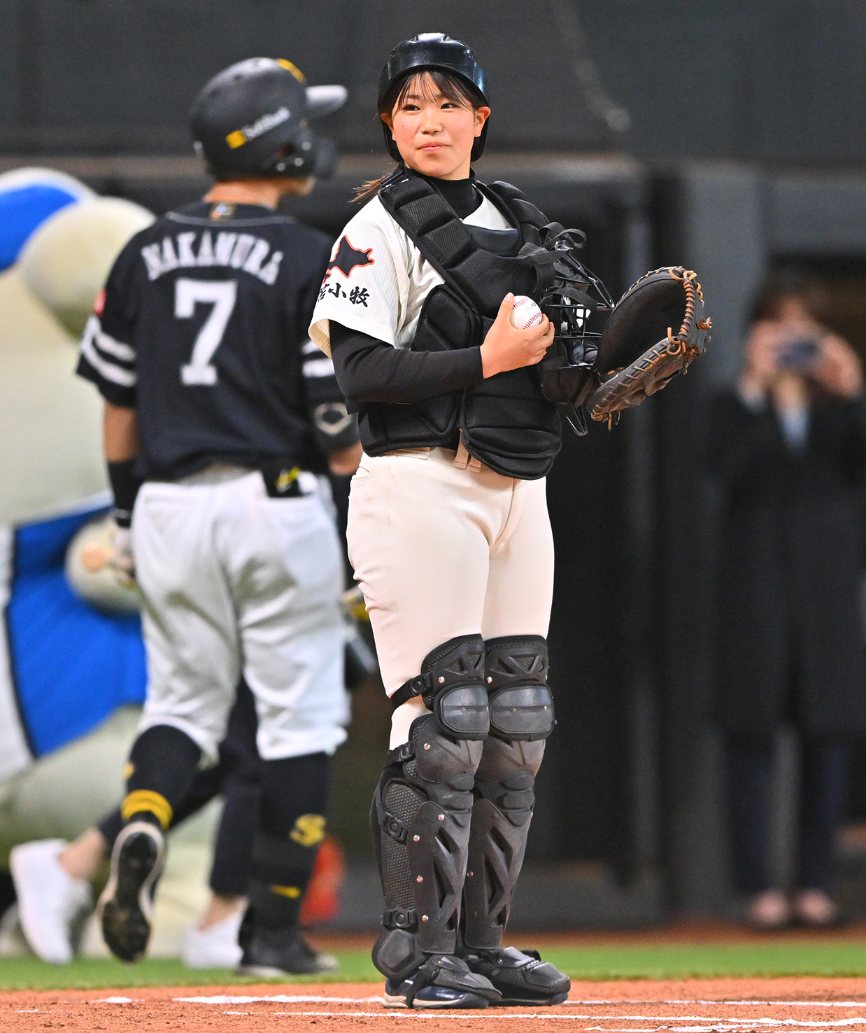 始球式を務めた駒苫女子硬式野球部の安東捕手