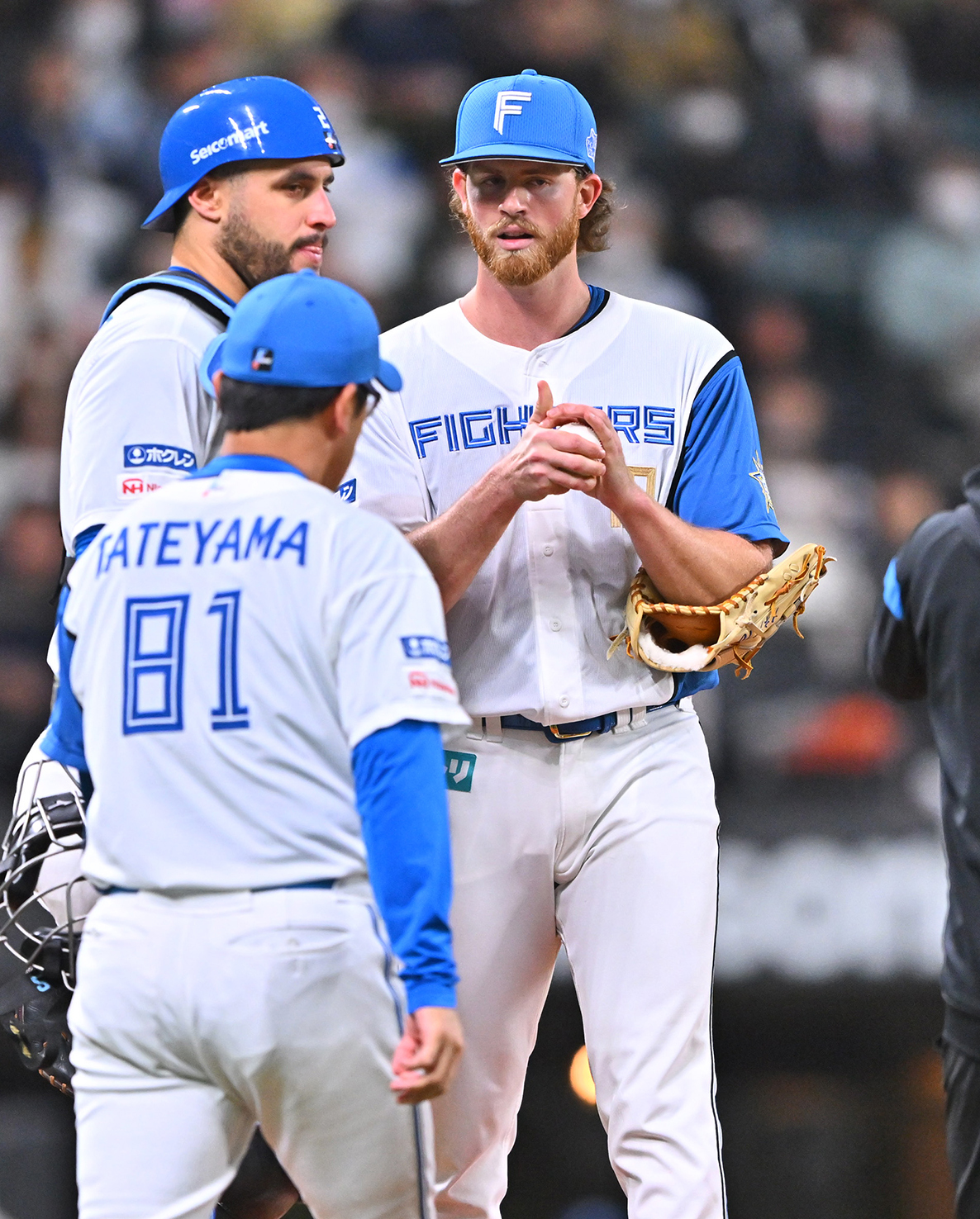 打線は六回以降無安打。特に終盤の八、九回はモイネロ投手(27)、オスナ投手(28)に6者連続三振に抑えられた。守備では、序盤にミスが重なって失点につながったが、五回に矢沢宏太投手兼外野手(22)が右飛を好捕、六回には江越大賀外野手(30)がレーザービームで得点阻止するなど挽回。九回は長谷川威展投手(23)が今季初登板で柳田を遊飛に抑えるなど1回を無失点に抑えた。新庄剛志監督(51)は「切り替えて、明日!明日!」とコメントを残した。