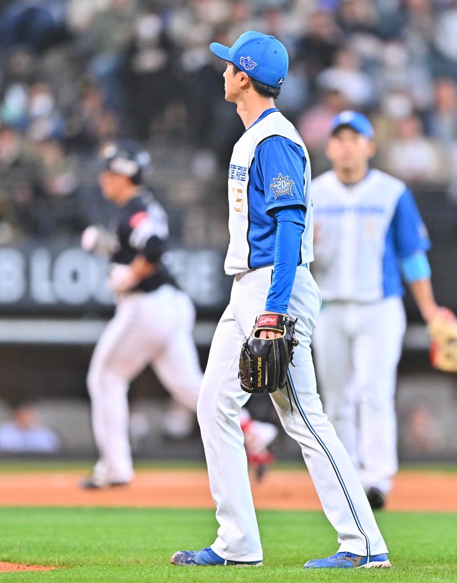 二回無死一塁、栗原に2点本塁打を打たれる上沢