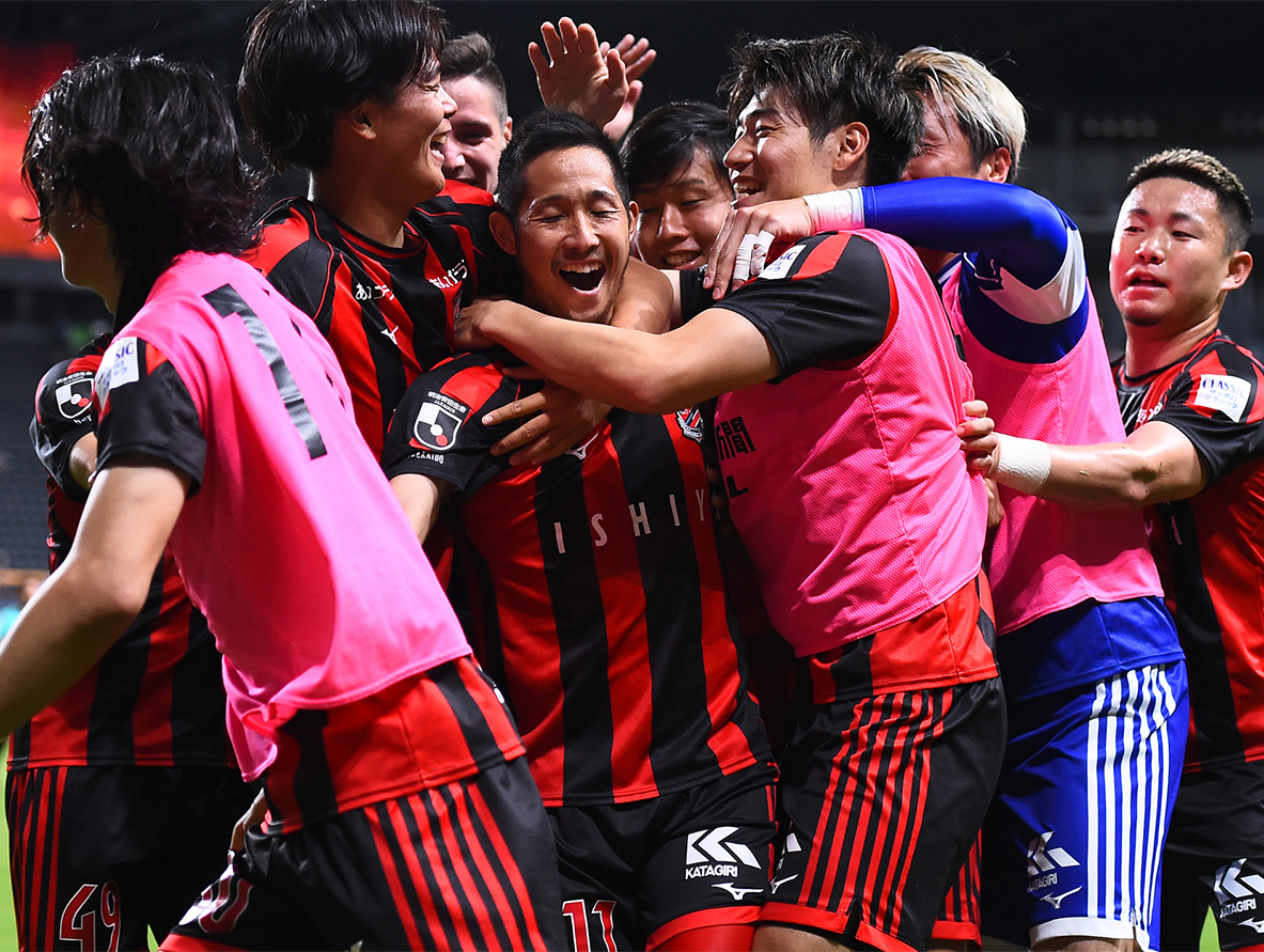 後半39分、MF青木(左)が勝ち越しゴールを決める