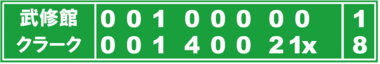 昨秋の全道を制しセンバツ甲子園に出場したクラークが投打で武修館を圧倒し8強へ駒を進めた。先に得点したのは武修館だった。三回2死満塁から4番の関口凛武左翼手(りんた、1年)が遊撃への内野安打を放ち先制した。しかし、クラークがすかさず反撃。裏の攻撃で追いつくと、四回には4本の長短打を集め4点を奪った。五回からはエース・新岡歩輝投手(あゆき、3年)が2番手で登板。テンポ良くアウトを重ね4回無失点と好投した。最後は八回2死一、三塁から新岡が左前適時打を放ちコールド勝利を決めた。佐々木啓司監督(67)は「中村くんがよく投げた」と、4回1失点と奮闘した先発の中村光琉投手(ひかる、3年)を称えた。