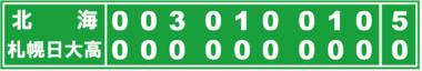 札幌支部同士の対戦は北海に軍配が上がった。背番号1を付ける先発・岡田彗斗投手(けいと、3年)が公式戦自身初となる完封勝利を挙げた。三回まで札幌日大高に安打を許さない上々の立ち上がり。四回、五回と安打を浴びたものの危なげない投球でスコアボードに「0」を重ねていった。七回には3者連続空振り三振を記録するなど13奪三振の快投。打線も岡田の好投に応え、三回に3番・今北孝晟二塁手(こうせい、3年)の2点本塁打が飛び出すなど着実に得点を積み上げ5―0で快勝した。