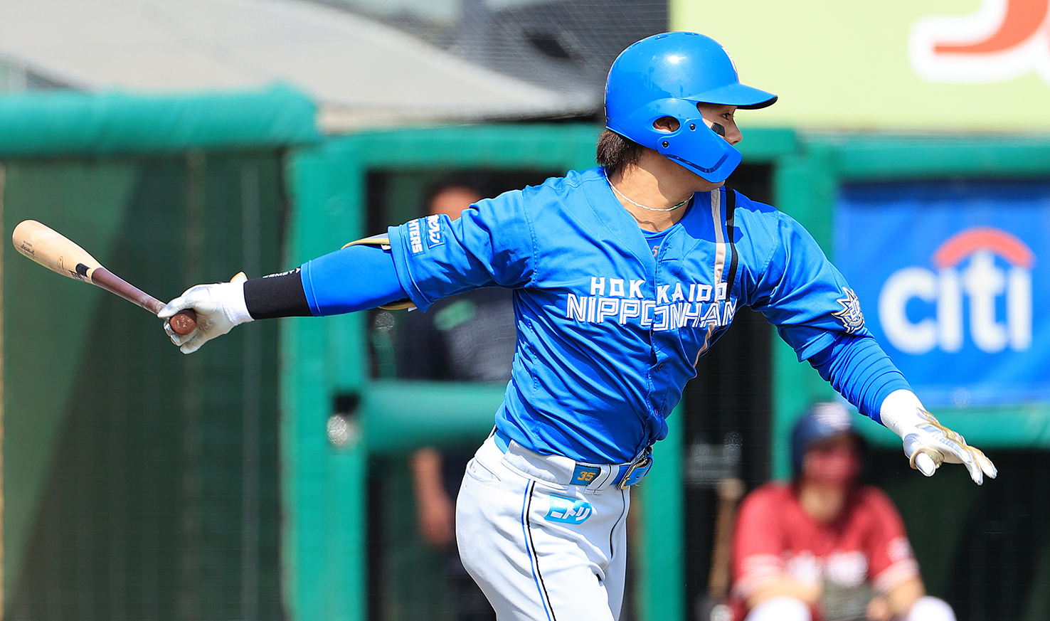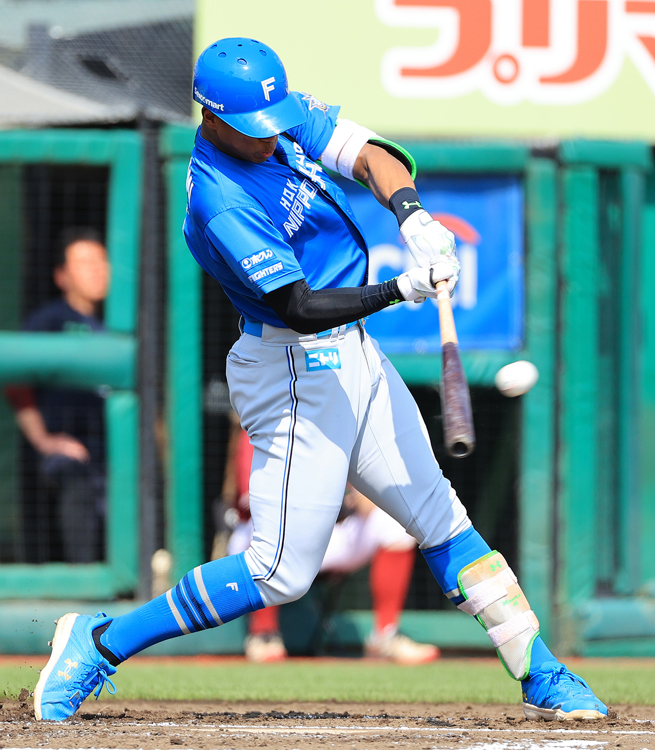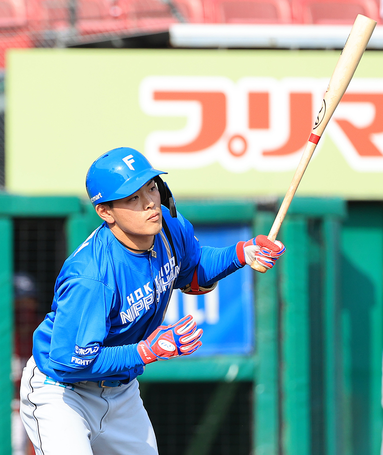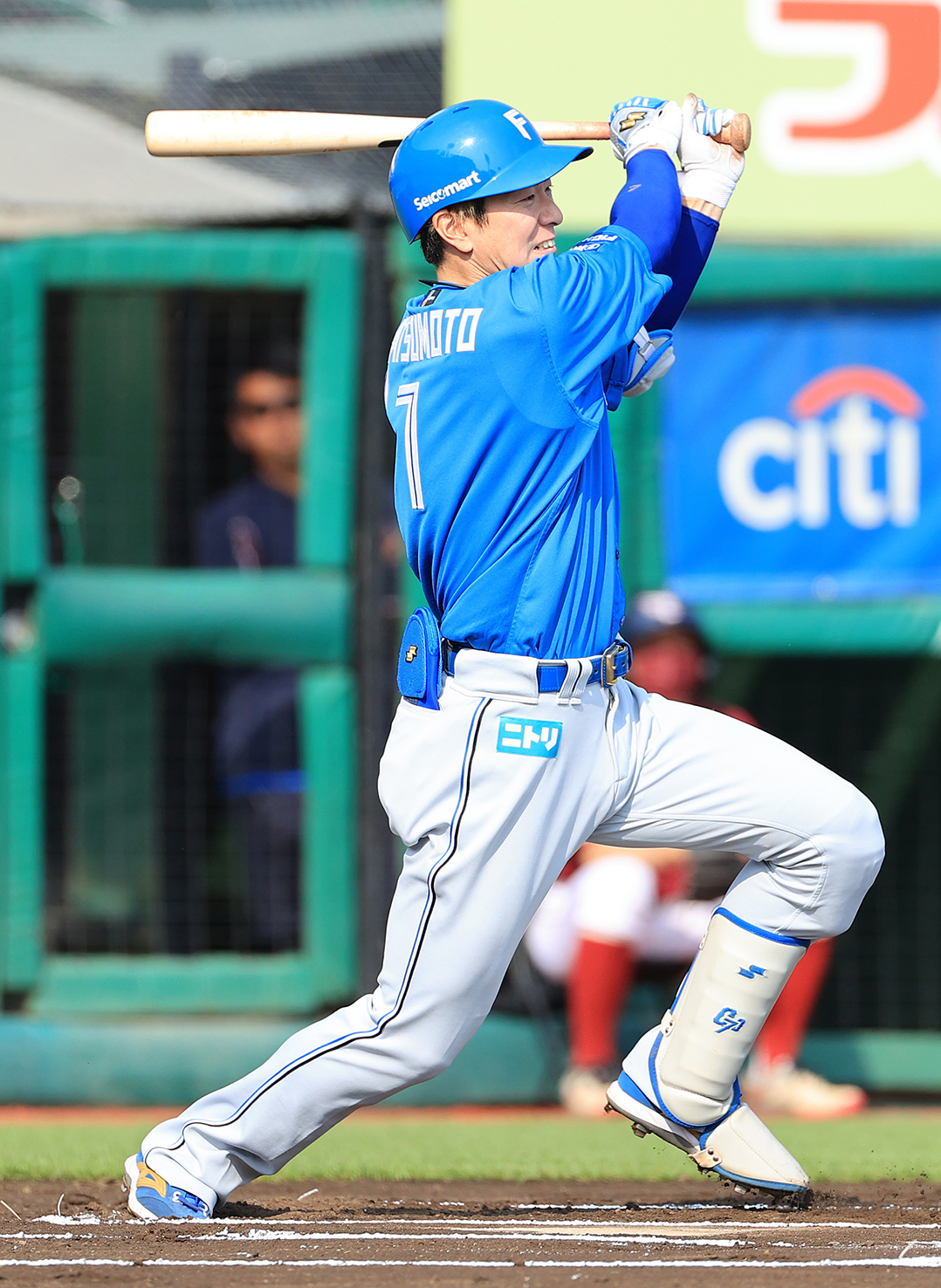 六回1死、松本剛が中前打を放つ