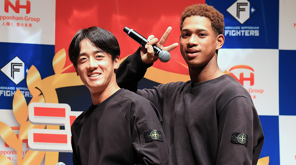 2023/11/20 21:45ファイターズ北山と万波が赤面 トークライブでまさかの私服かぶり 背番号1の質問にはタジタジ