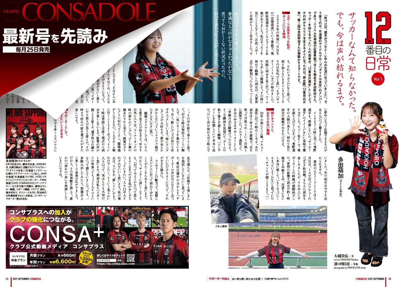 2025/08/18 19:10コンサドーレ【月刊コンサドーレ9月号】新企画《12番目の日常》第1回は多田萌加(タイトル未定)
