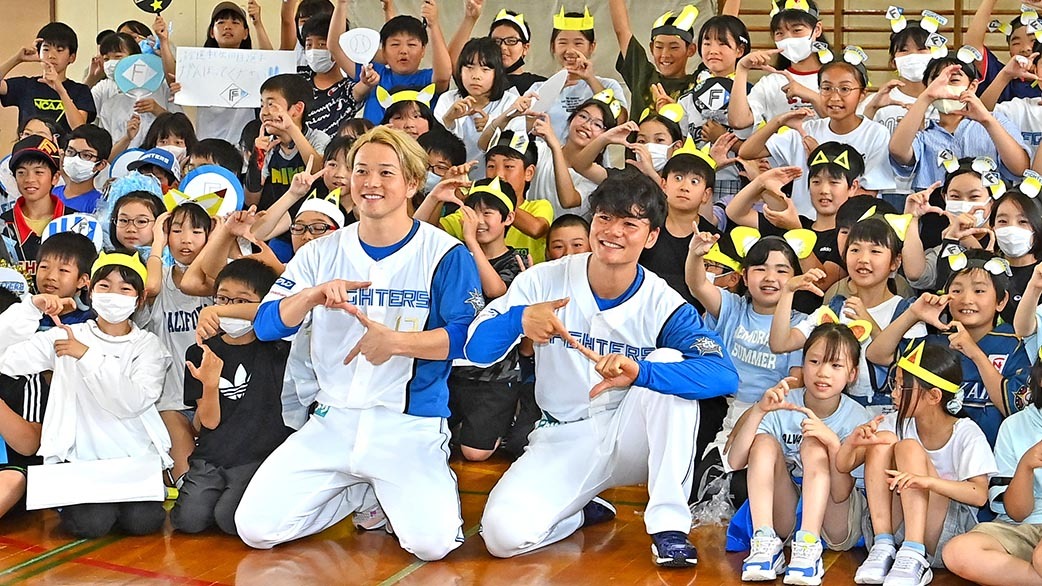 2023/07/10 20:05ファイターズ清宮 小学校訪問でパワーをチャージ 打って〝Sポーズ〟披露だ