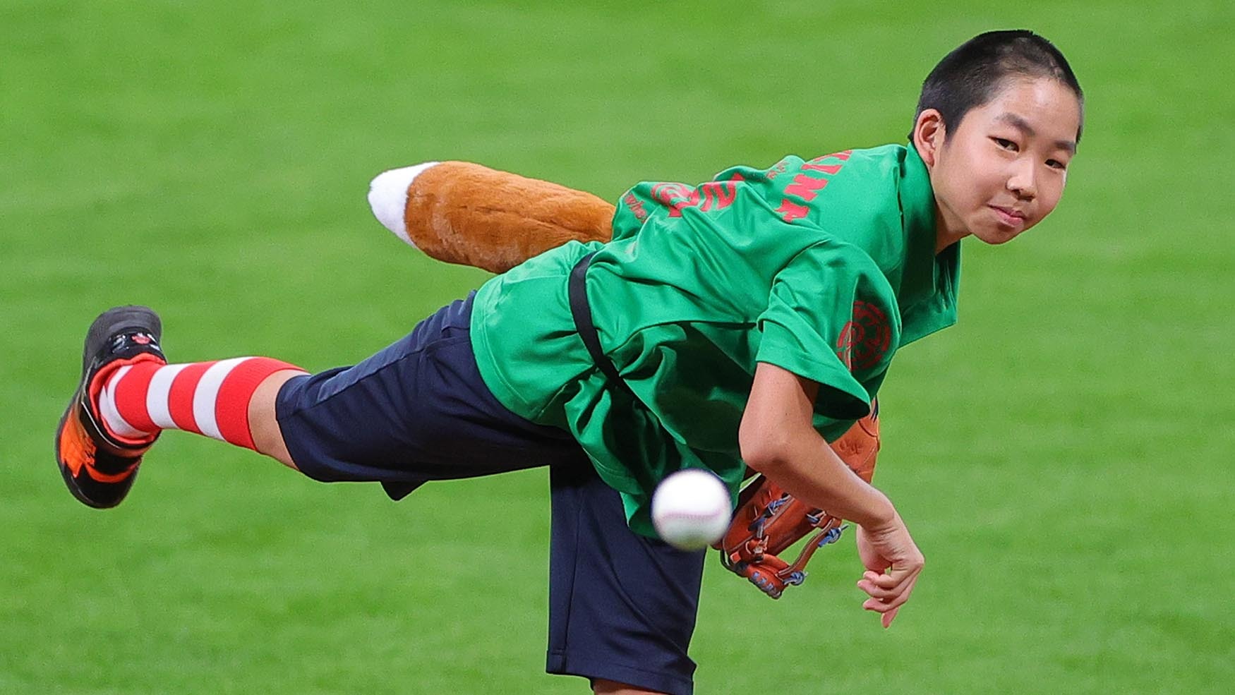 2023/08/17 20:40ファイターズ日本ハムの主催試合で始球式 病を抱える山角くんが元気いっぱいの投球