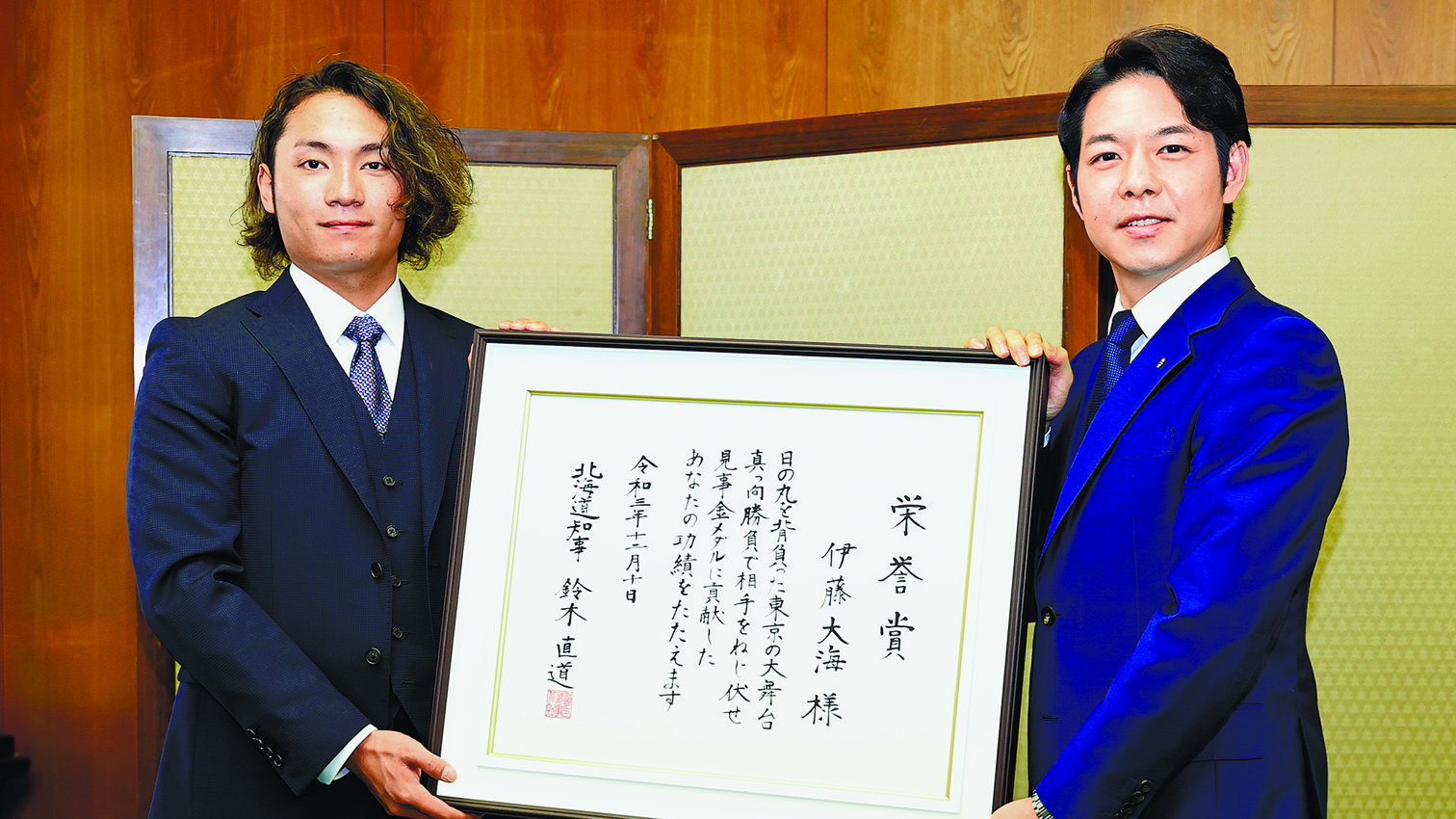 2021/12/11 14:42ファイターズ大海「伊藤大海杯」開く 道民栄誉賞贈呈式で夢語る
