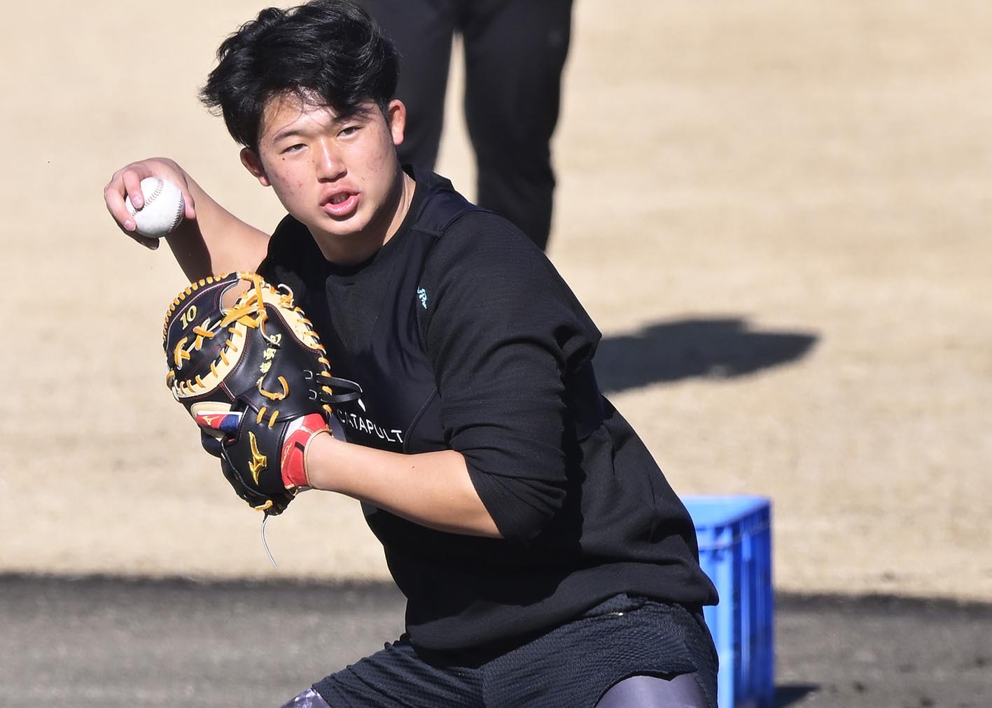 2024/01/13 19:25ファイターズドラ1細野晴希 15日に初のブルペン入り 緑色グラブにはお気に入りのキャラ名を刺しゅう