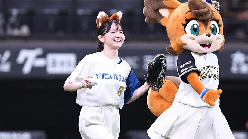 2023/08/26 18:25ファイターズNORD(ノール)の瀧原光が始球式に登場 27日の2軍戦・日本ハムvsロッテ