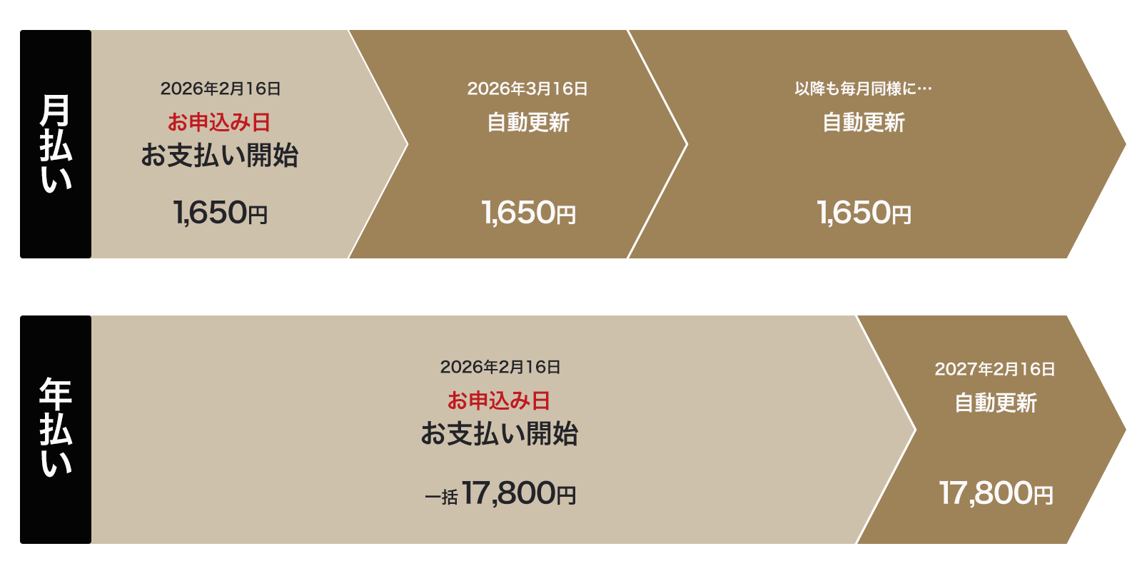 例)2026年2月16日にお申し込みいただいた場合