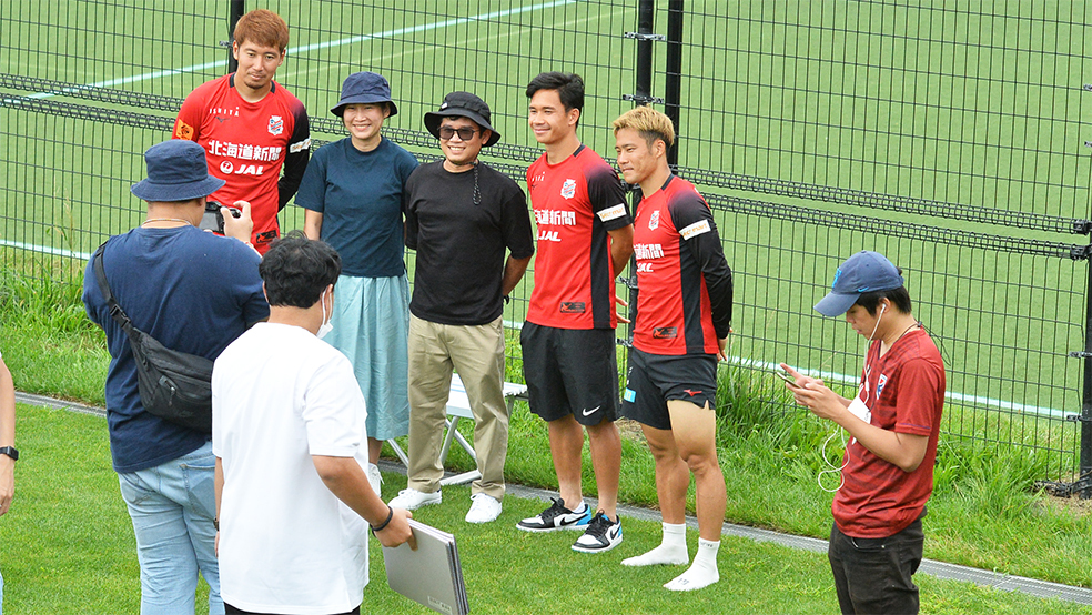 2023/08/31 19:30コンサドーレ札幌の練習にタイメディア&インフルエンサー約20人訪問 前節スーパーゴールのMFスパチョークを祝福