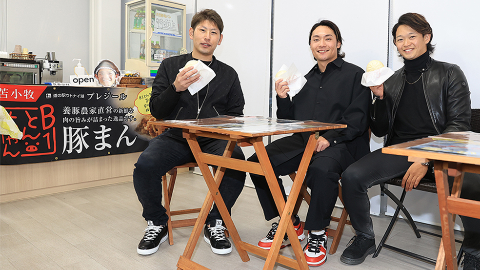 2023/12/03 21:50ファイターズ道産子トリオが軽快トーク 今川はけが予防へ新アイテム導入「〇〇を長くしました」