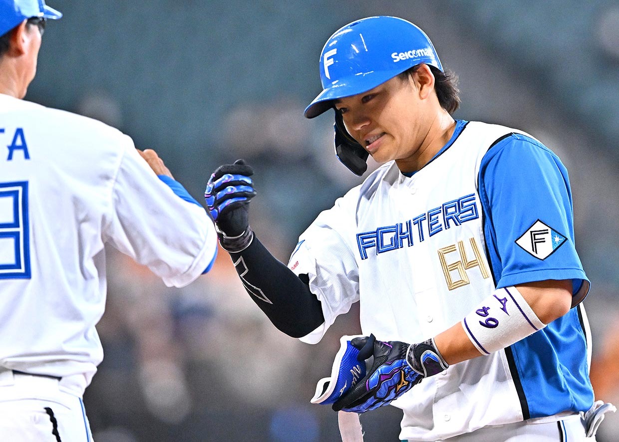2024/03/17 19:05ファイターズ田宮裕涼が〝ゆあビーム〟発動 打っては鮮やか右前打 かつて二遊間を組んだ郡から「ナイスヒット」