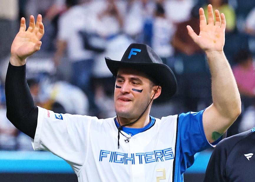 2024/09/07 21:25ファイターズマルティネスがお立ち台で着用したカウボーイハット 清宮幸太郎の発案で本塁打祝いに?!